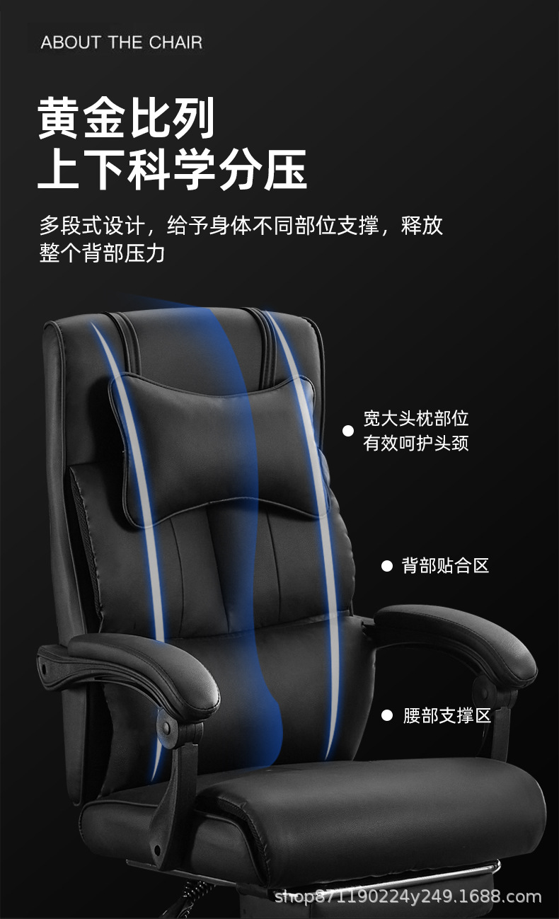真皮老板椅子家庭用書斎のテーブルと椅子は昼休みのパソコンの椅子に横になってソファーの椅子をマッサージすることができます。