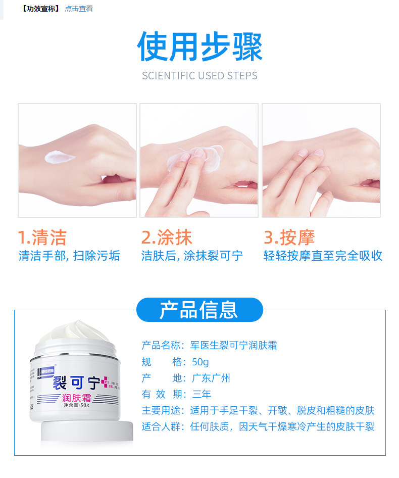 軍医師裂可寧霜防裂手クリームクリーム脱皮防凍防乾裂50g純正品男女共通