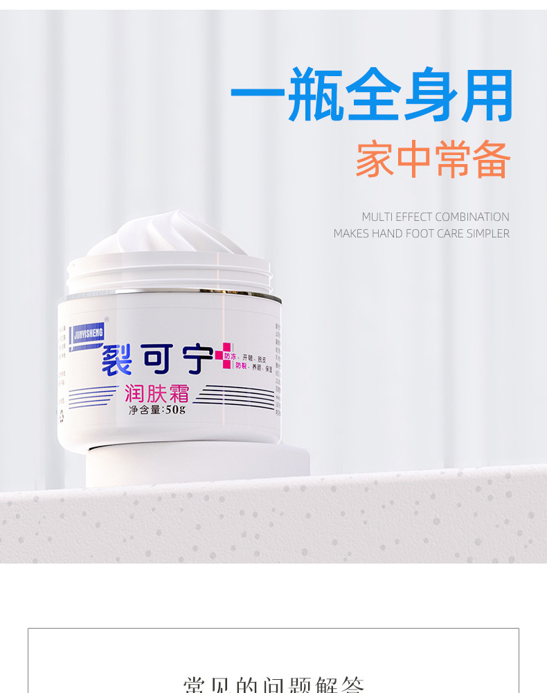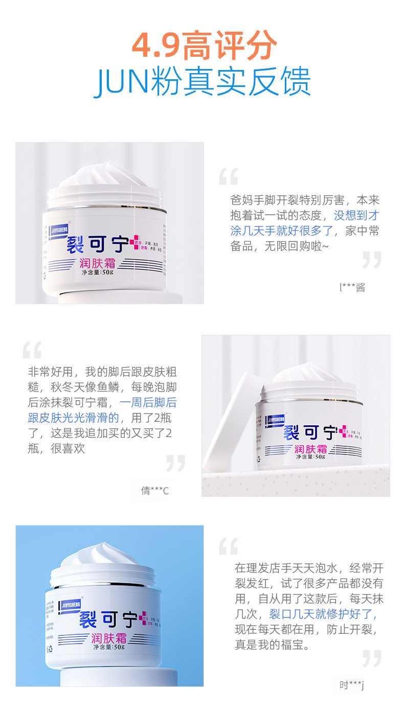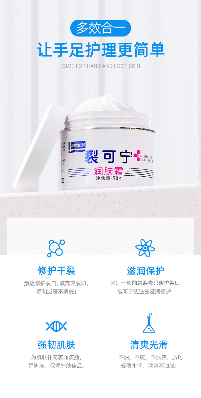 批发JUNYISHENG裂可宁润肤霜50g护手防干膏足脚后跟男女秋冬一件
