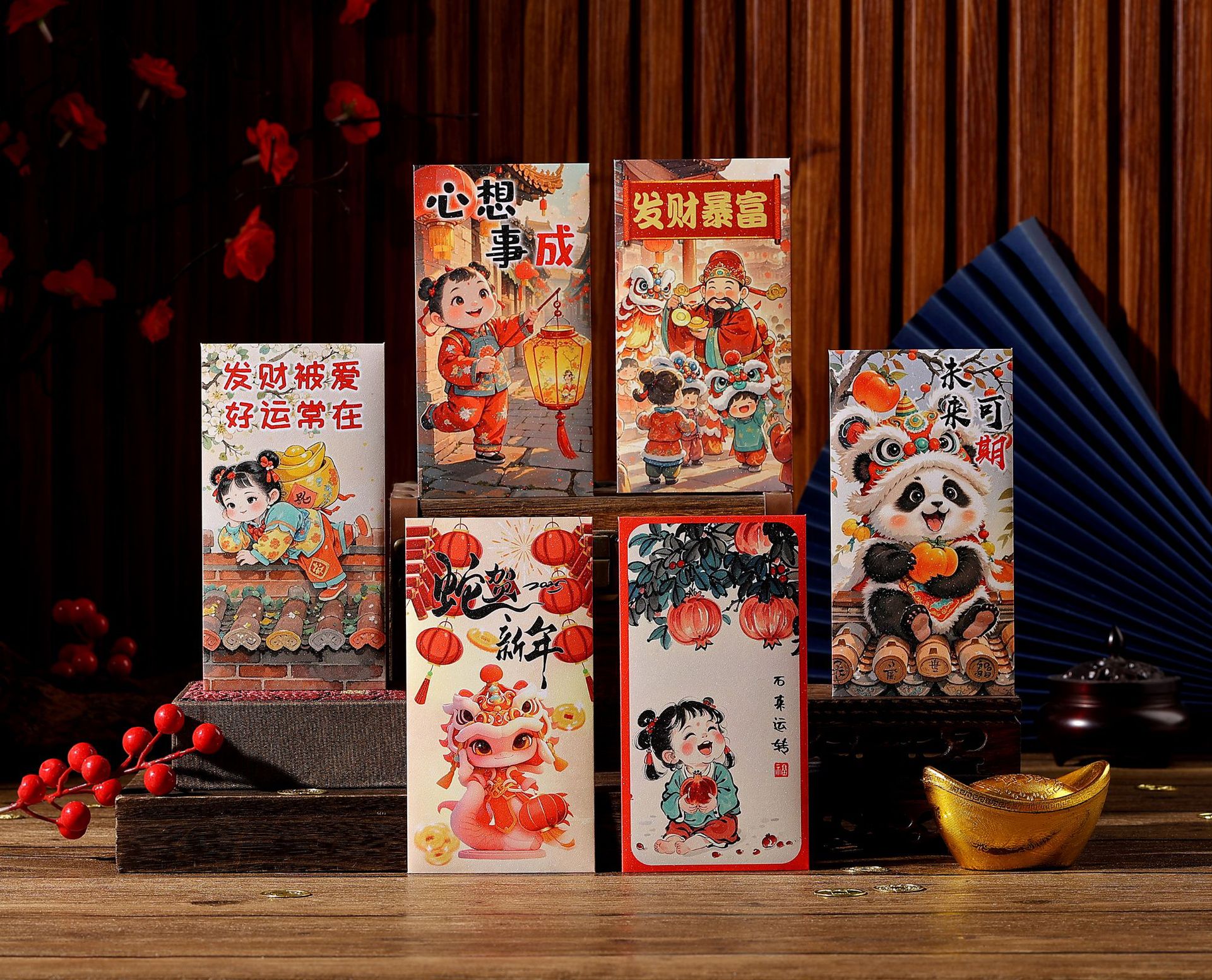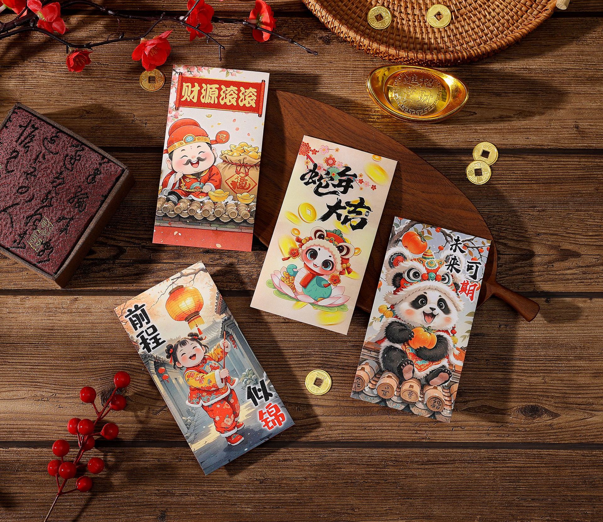 蛇年国潮パンダ福娃イラスト赤包袋新年正月旧正月お年玉包利は封2025新製品である
