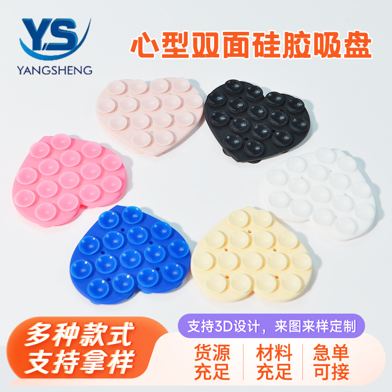 東莞メーカーハート型厚さ両面シリコン吸盤大吸引力固定滑り止めパッド携帯電話スタンドスポット卸売り