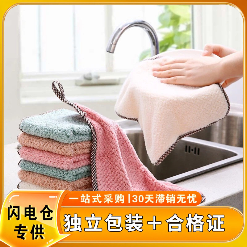 証明書付き、請求書発行可能、吊り下げ式パイナップル柄両面ふきん、キッチン用コーラルベルベット、糸くずが出ない、吸水性、手拭き用