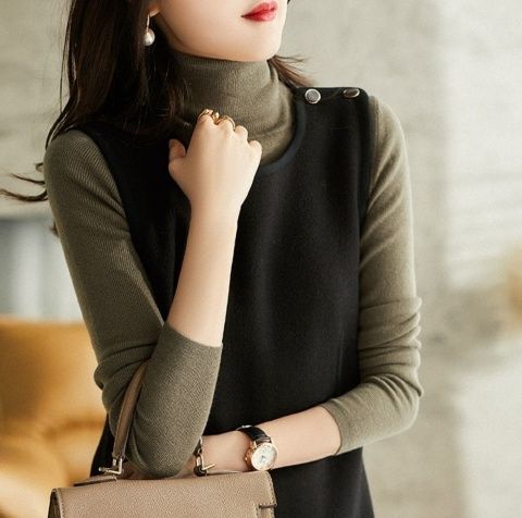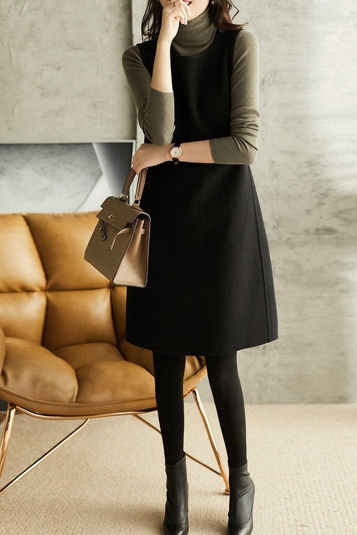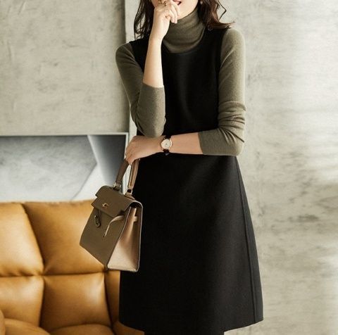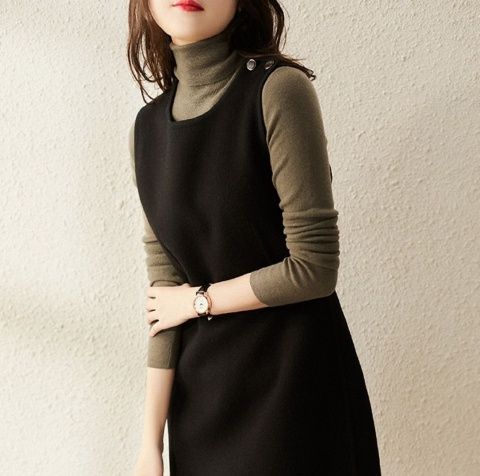 9213春秋新款背心裙洋气时尚潮流中长款无袖毛呢连衣裙打底马甲裙