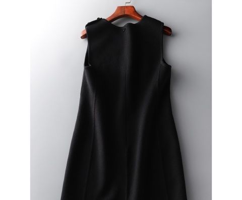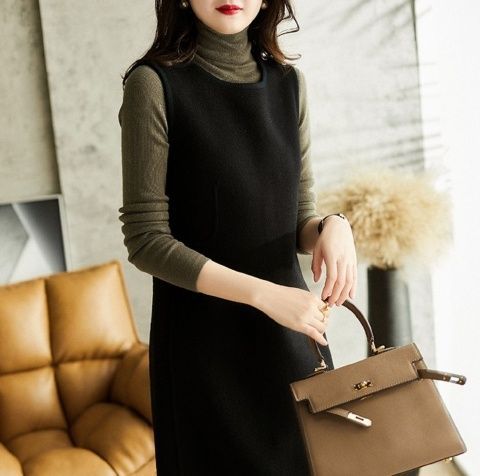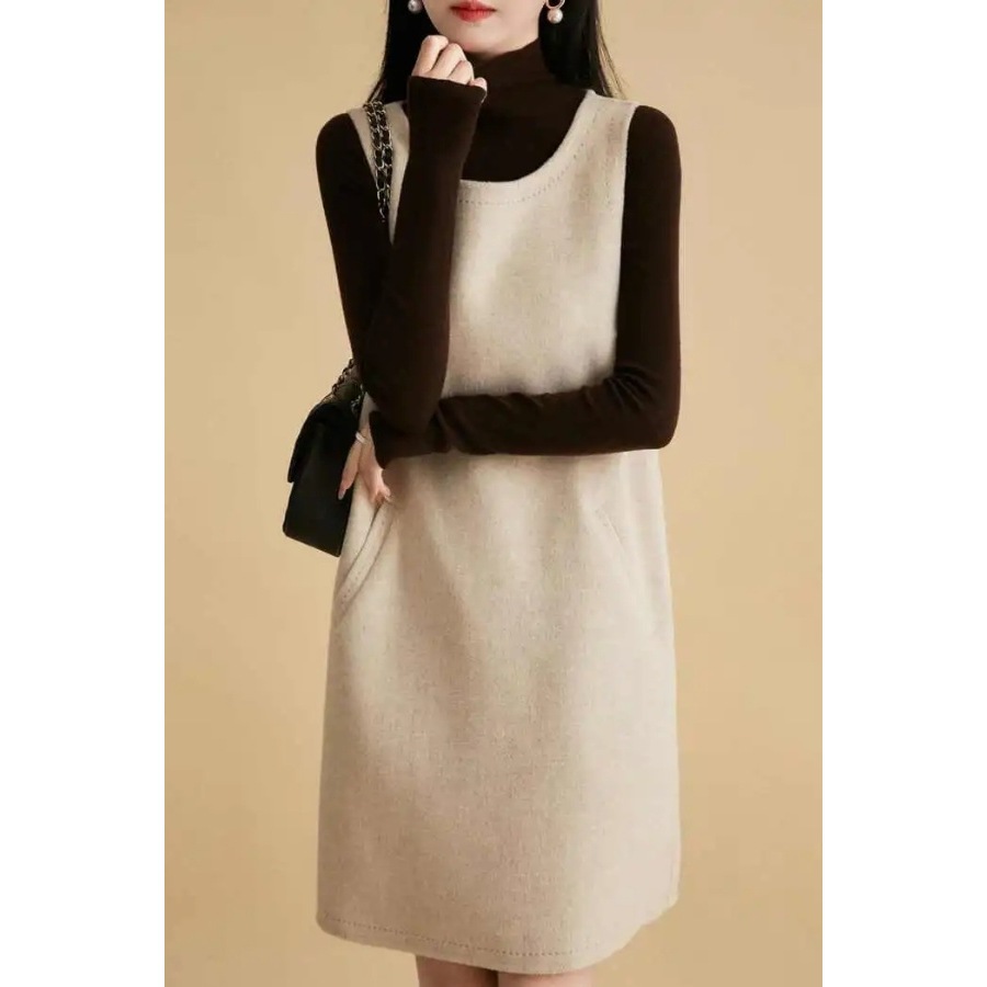 9201 タンクトップ女性の 2024 春と秋のウールノースリーブドレスアウターウェア痩身気質ポケットミッド丈ノースリーブバック