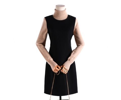 女性のデザインのフランスの中の長いノースリーブの黒いノースリーブのワンピースの秋冬の毛のベストのスカートの春の服装のa字のスカートのファッション