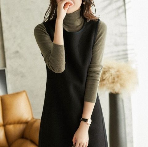 ウールベストワンピース レディース 秋冬 2025年新作 ベストワンピース 韓国風 ミディアム丈 サスペンダースカート インナー スカート