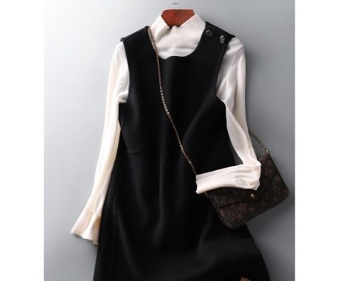 优雅风高级气质春秋冬新品双面呢叠搭纯色中裙无袖背心毛呢连衣裙