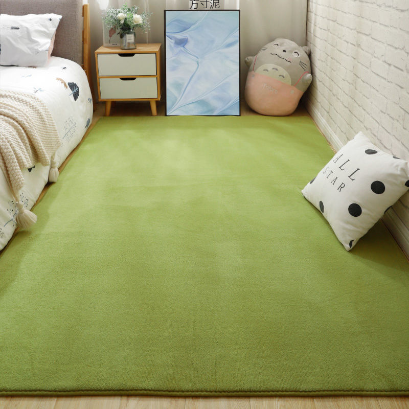 シンプルな現代のサンゴの絨毯の客間のお茶のいくつかの床は家庭の部屋の寝室のベッドの上でいっぱいになっています。