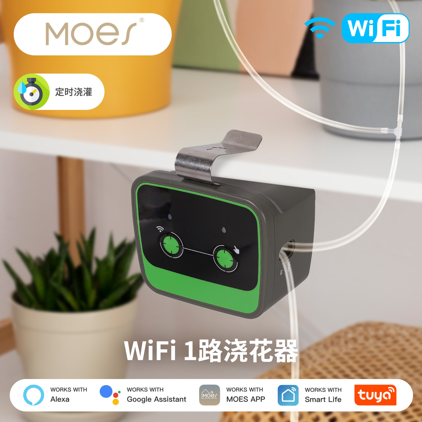 室内1路WiFi浇花器涂鸦智能家居app远程控制电池插电2合1浇水机