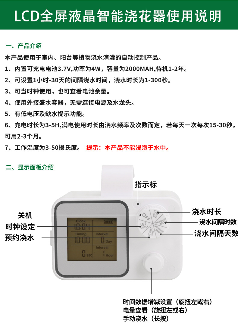 商品番号 ノブ-LCD-全画面自動インテリジェント花水やり機-ホワイト