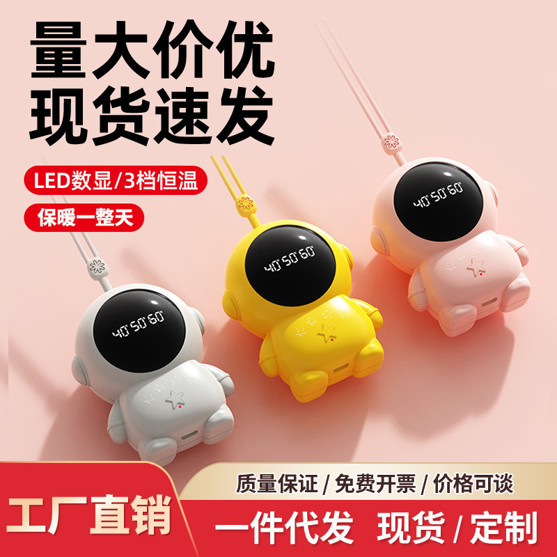 跨境太空人暖手宝卡通便携usb充电数显迷你宇航员暖宝宝冬季礼品
