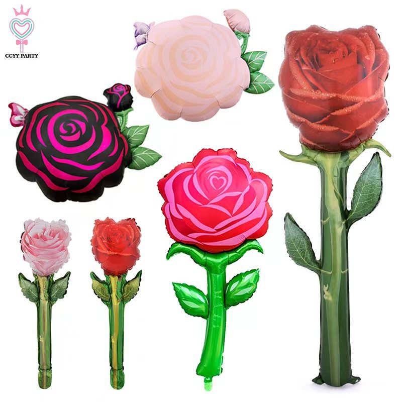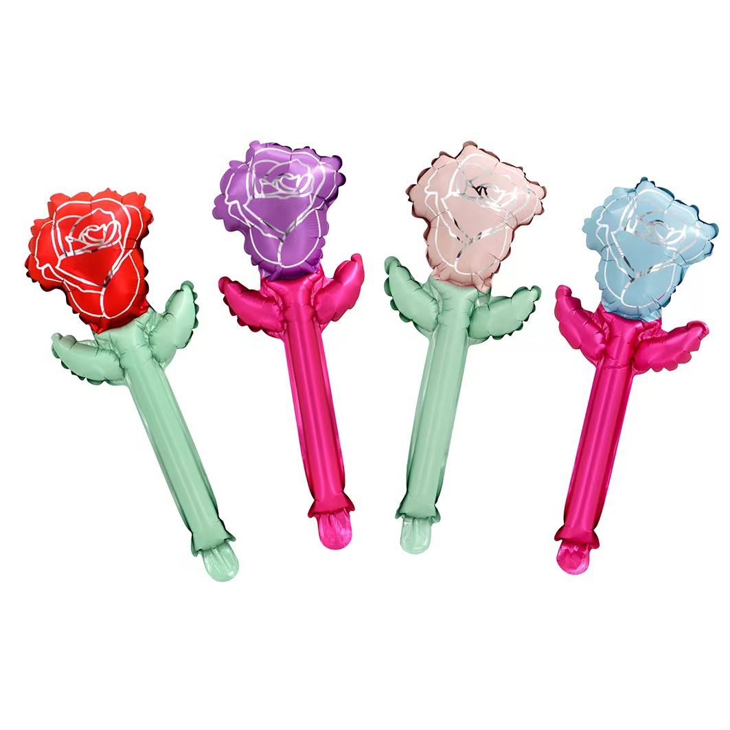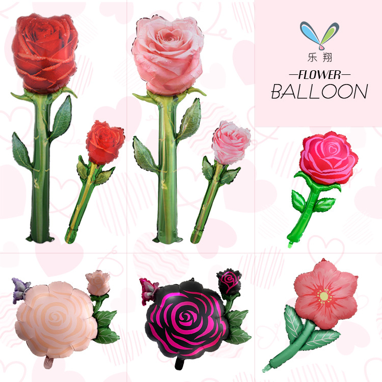 大号手持玫瑰花铝膜气球跨境新款情人节母亲节派对氛围装饰道具