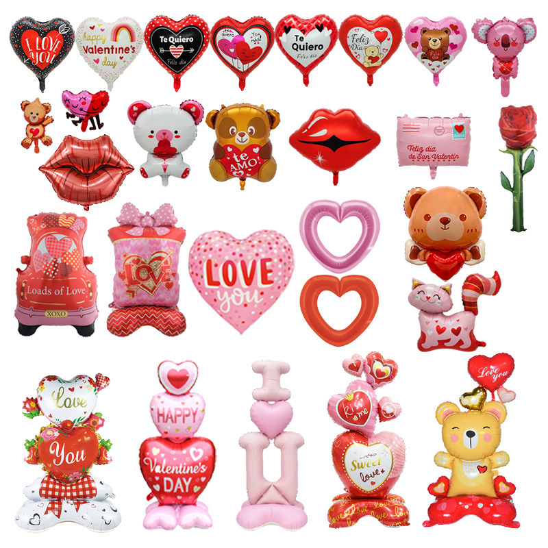 国境を越えた新しいバレンタインデーのアルミ膜風船愛熊唇ラブレターバラの告白シーンに風船を配置する