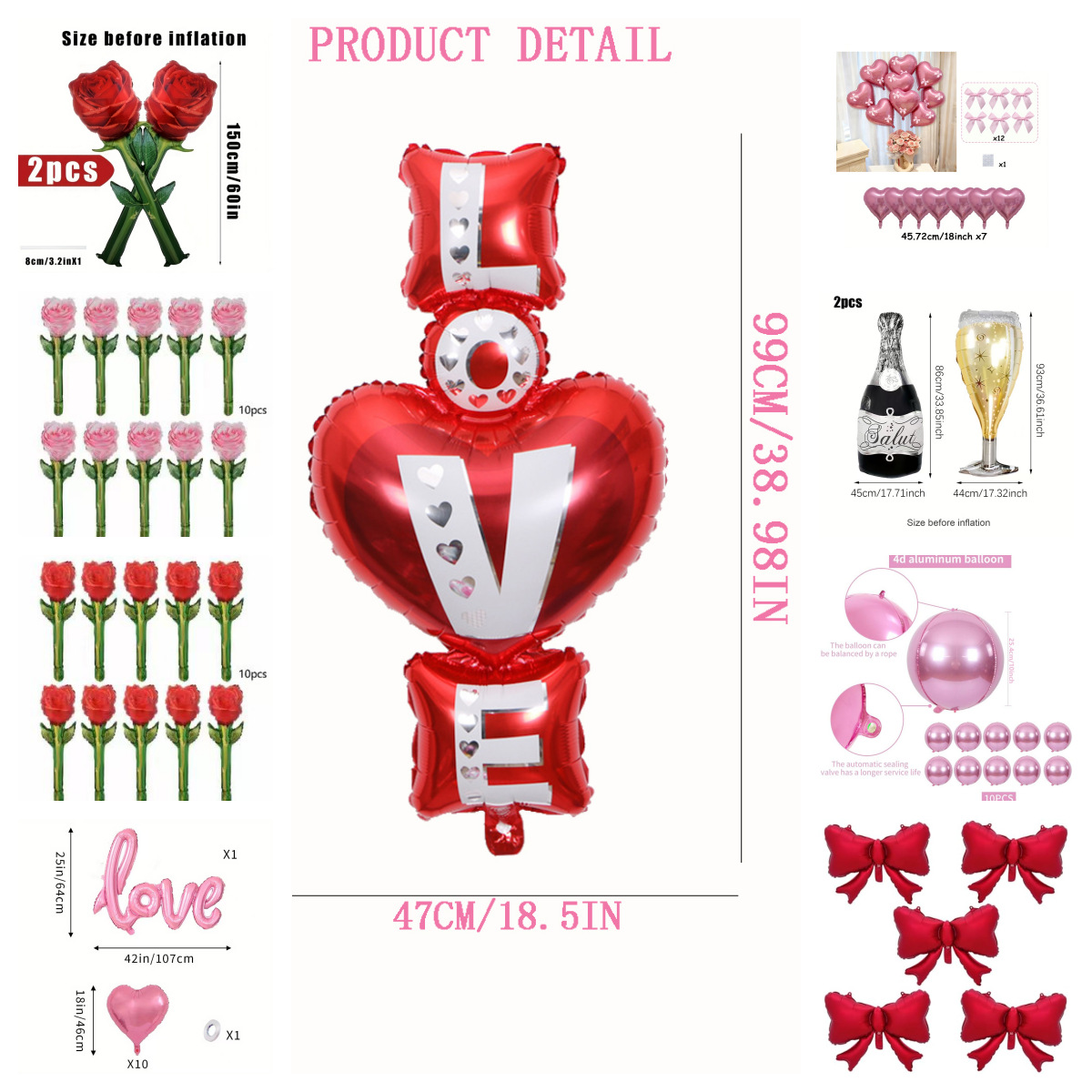 情人节气球装饰品跨境新款套餐英文大玫瑰花束铝膜酒瓶蝴蝶结love