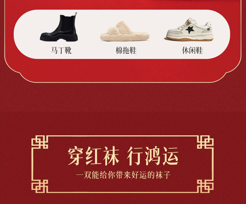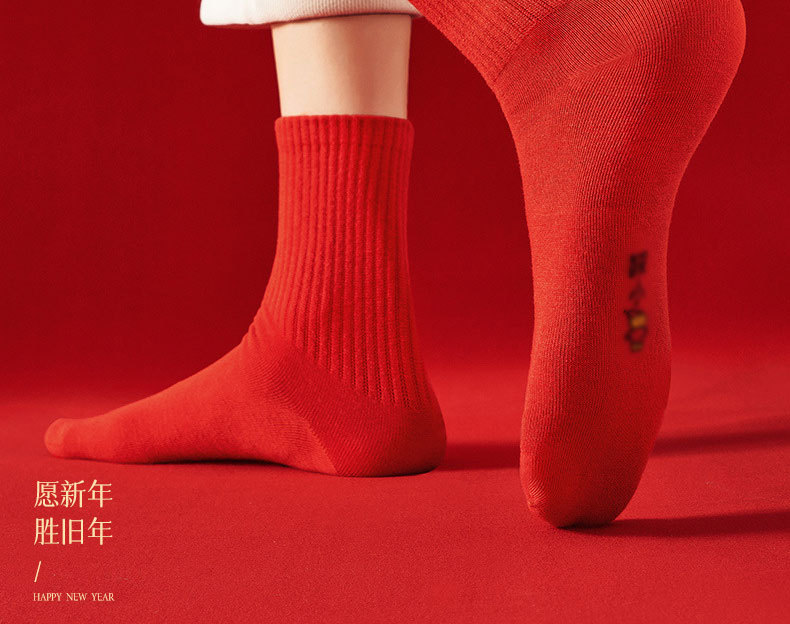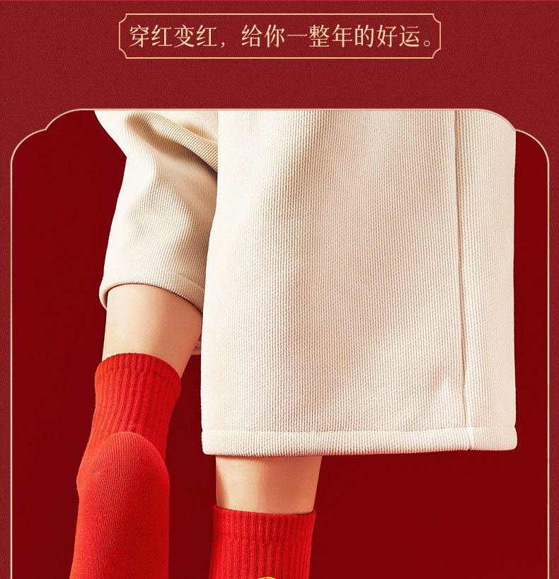 【200针同款优选】新年红袜子男女同款女棉袜秋冬中筒本命年礼盒
