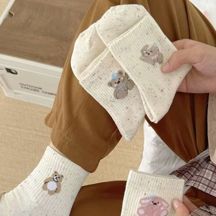 漫画アイデア糸靴下女性の純粋な綿ミッドカーフソックスかわいい春と秋のスタイルイントレンディなカレッジスタイル春と秋の吸汗性の女性の靴下