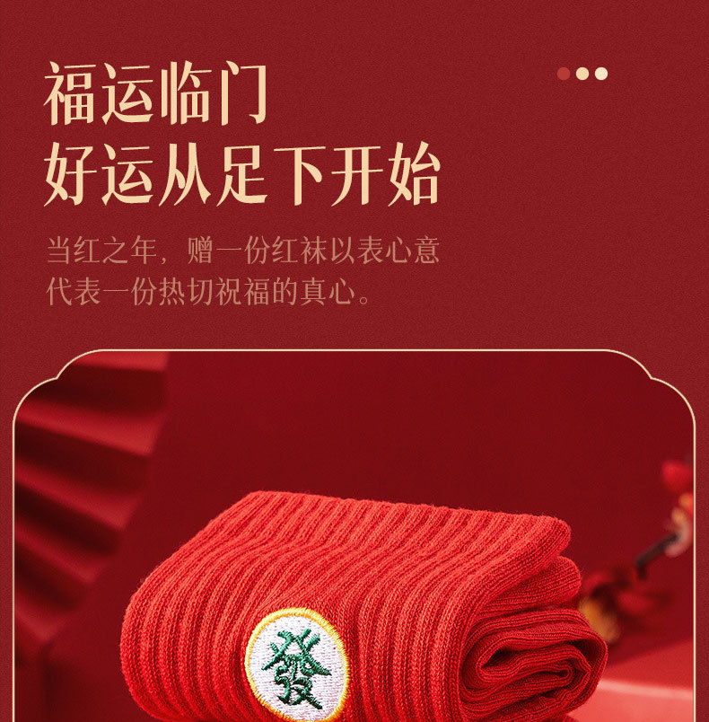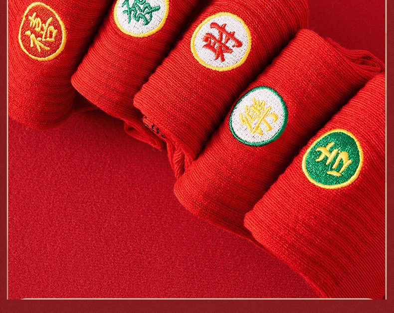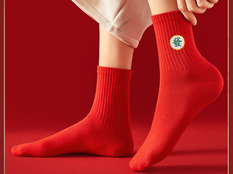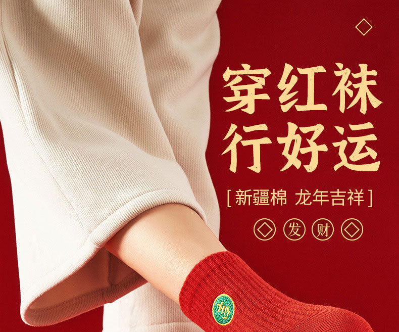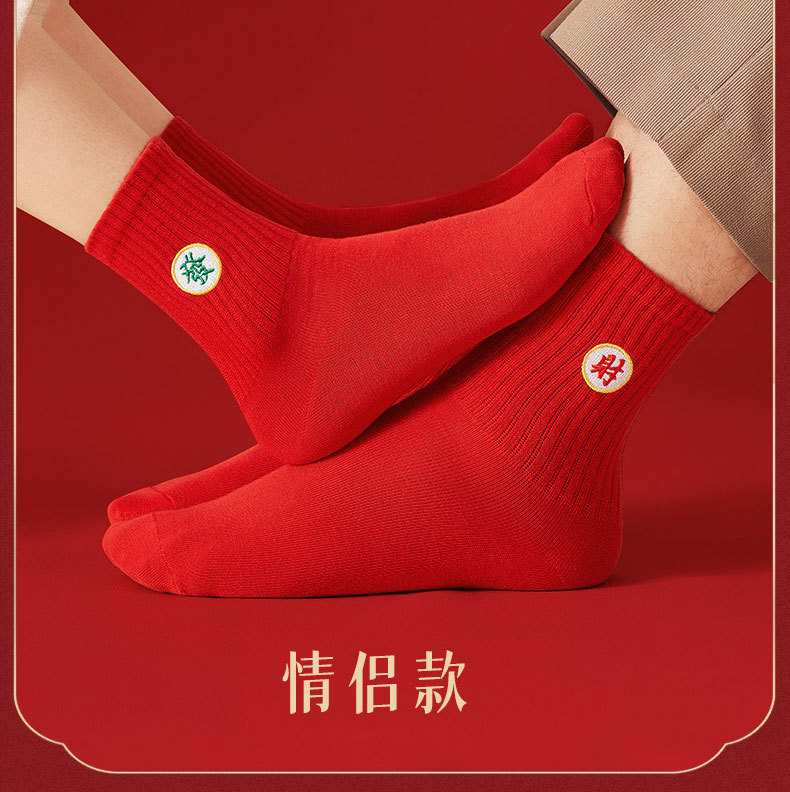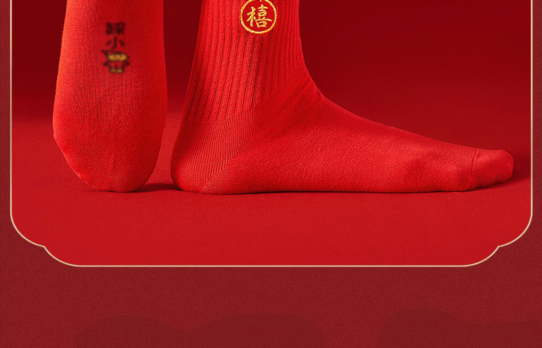 【200针棉+刺绣】新年鸿运袜子福禄中筒袜红色本命年男女喜庆长袜