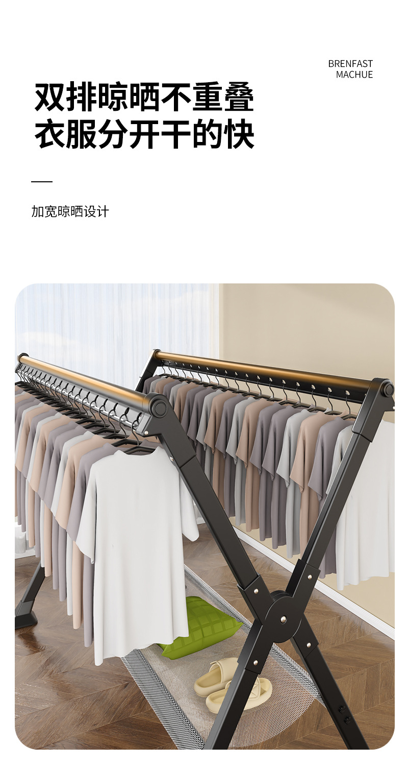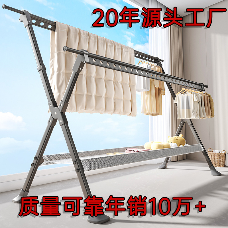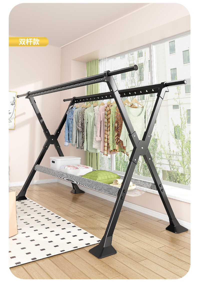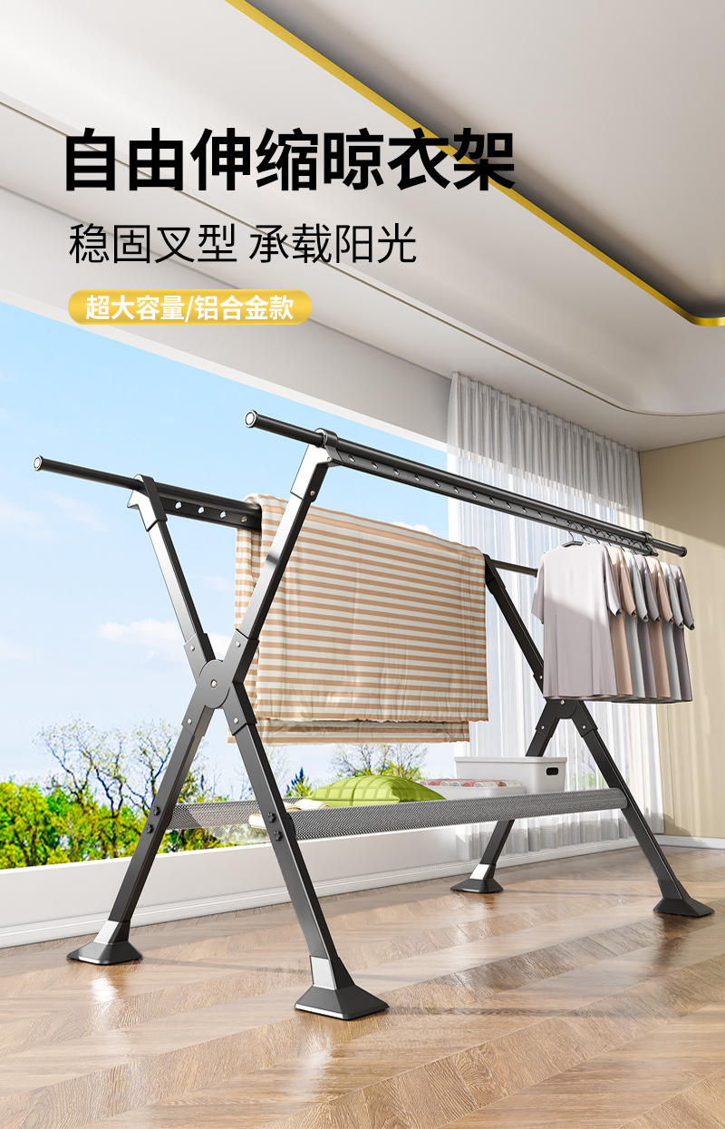 晾衣架落地家用阳台室内外折叠加粗凉衣杆挂衣服X型伸缩晒被子架