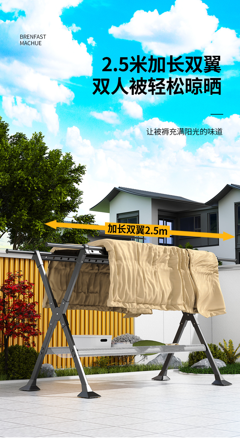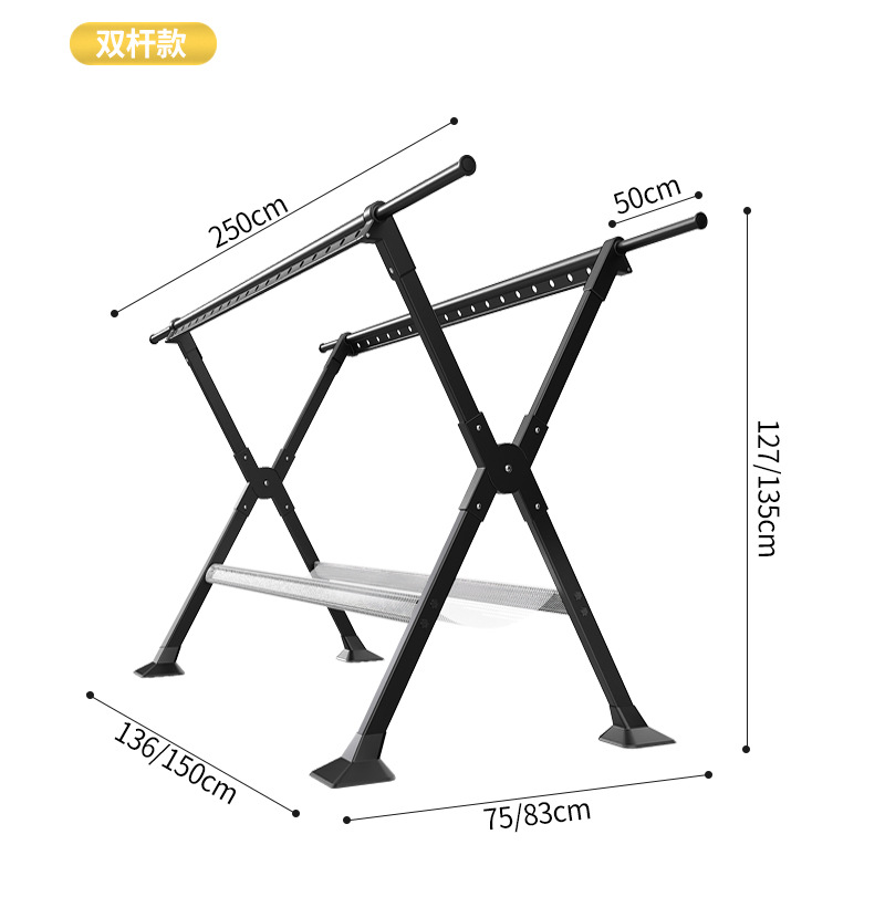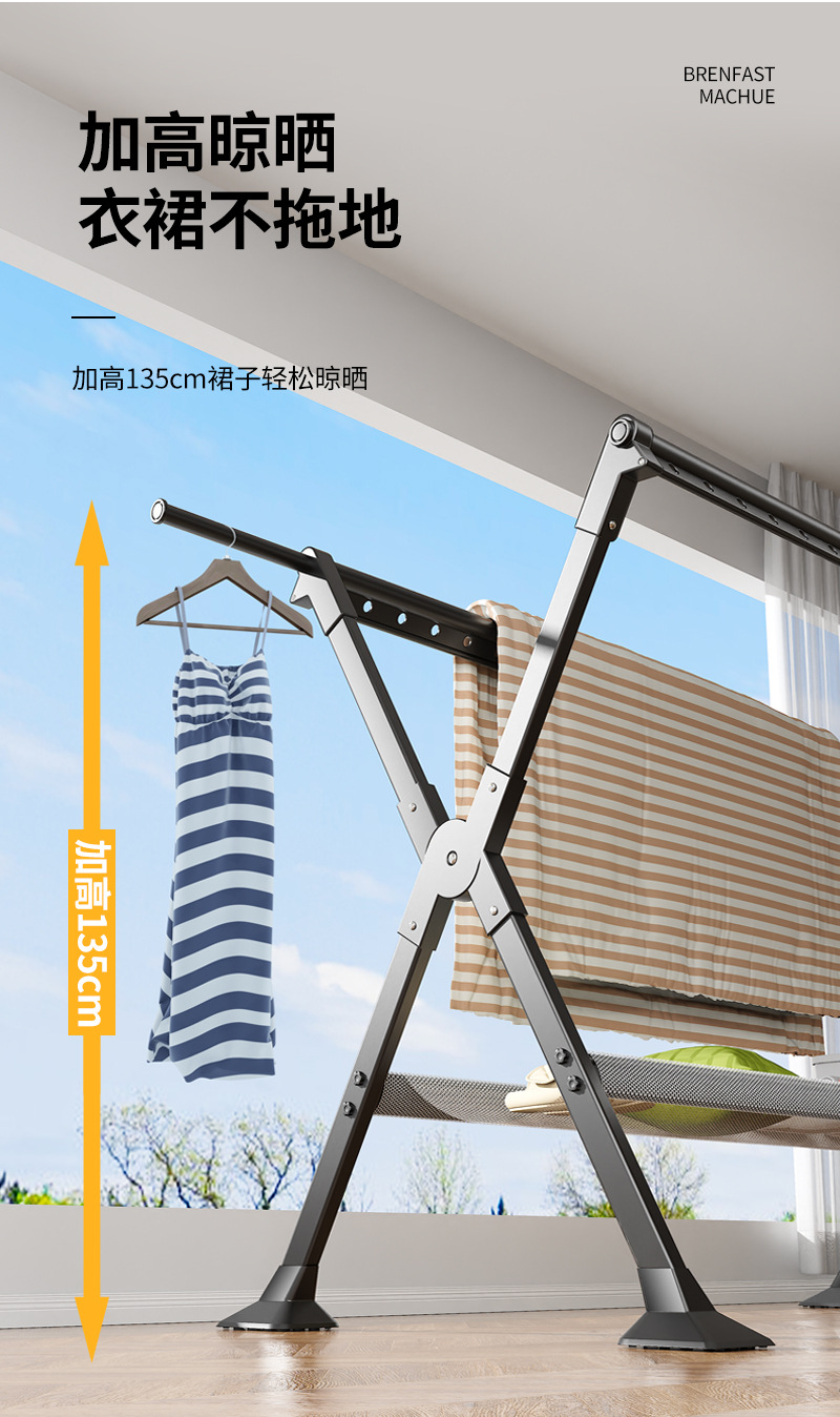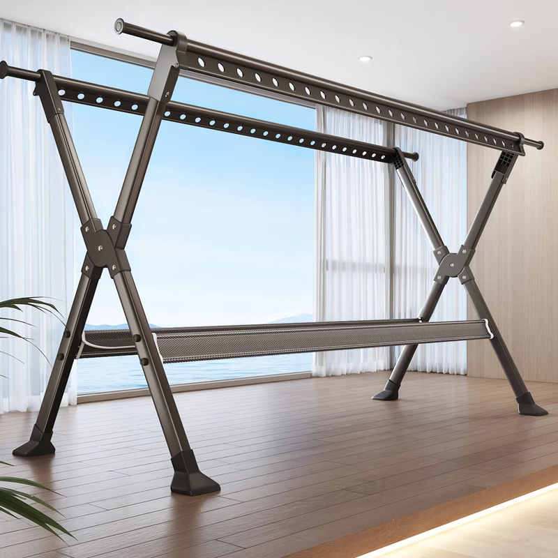 晾衣架落地家用阳台室内外折叠加粗凉衣杆挂衣服X型伸缩晒被子架
