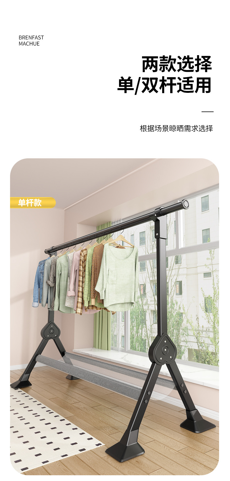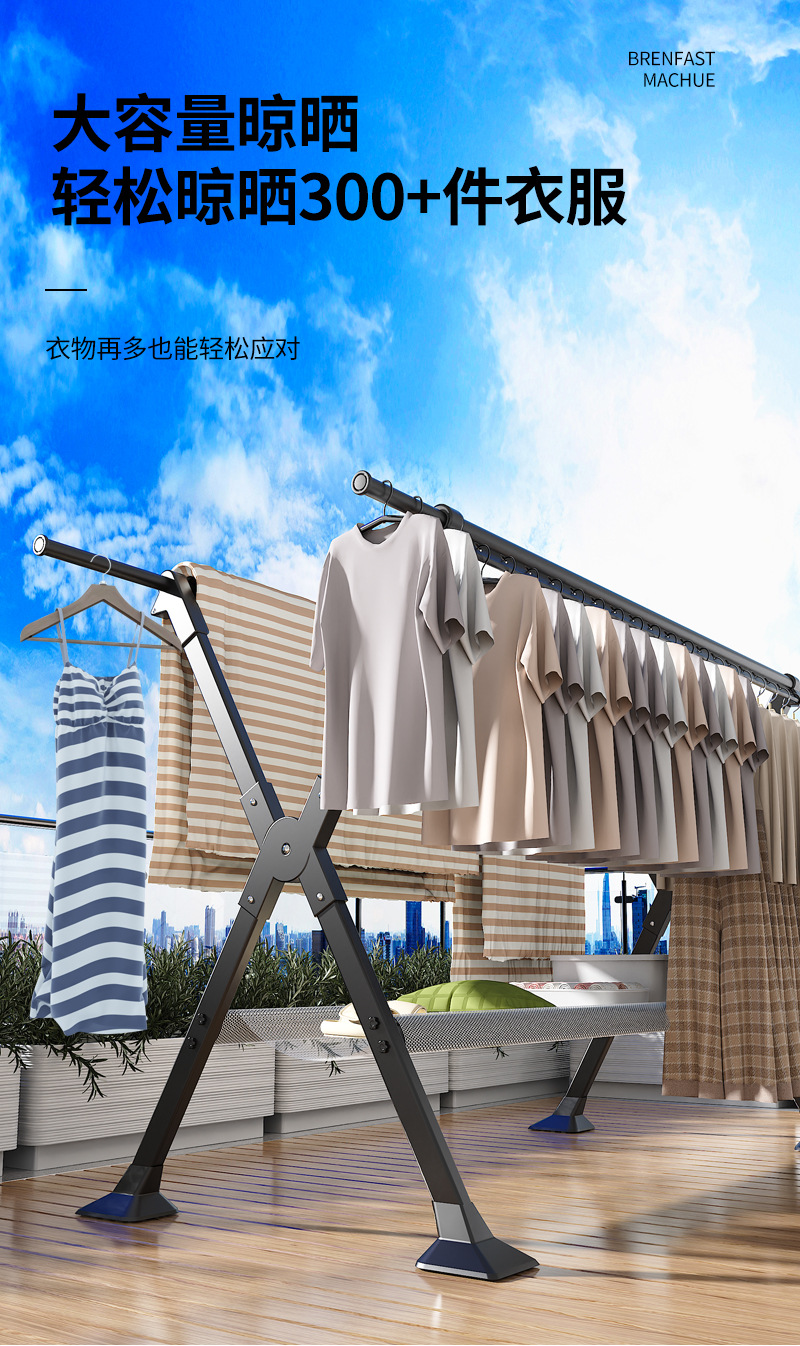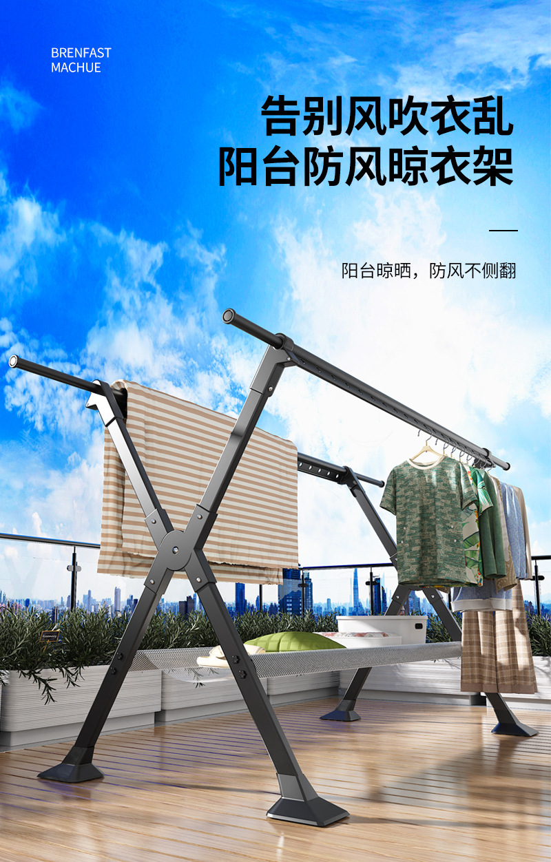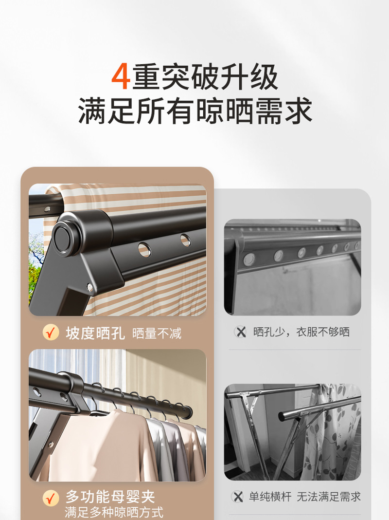 晾衣架阳台家用折叠落地凉衣杆室内外挂衣服伸缩晒衣架晒被子神器