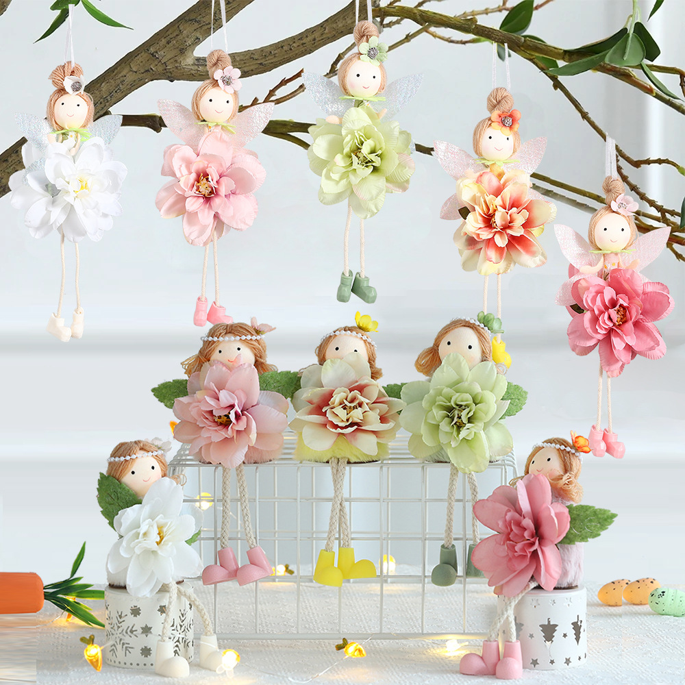 アマゾン イースター 春の新作 春の女の子用ペンダント 花柄のかわいい天使人形 シーンパーティーデコレーション