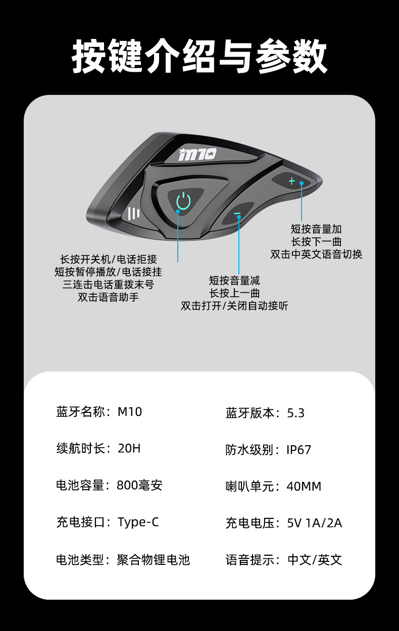 外国貿易輸出国内中国語英語新型M10ヘルメットbluetoothイヤホン新型超長航続IP6防水