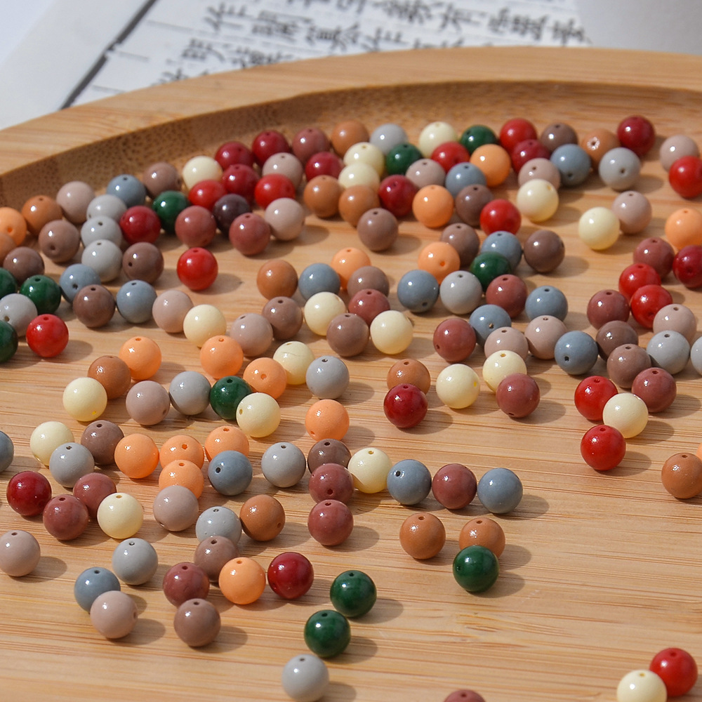 美拉德色系6mm玻璃烤漆圆珠散珠子 手工diy材料手链项链串珠配件