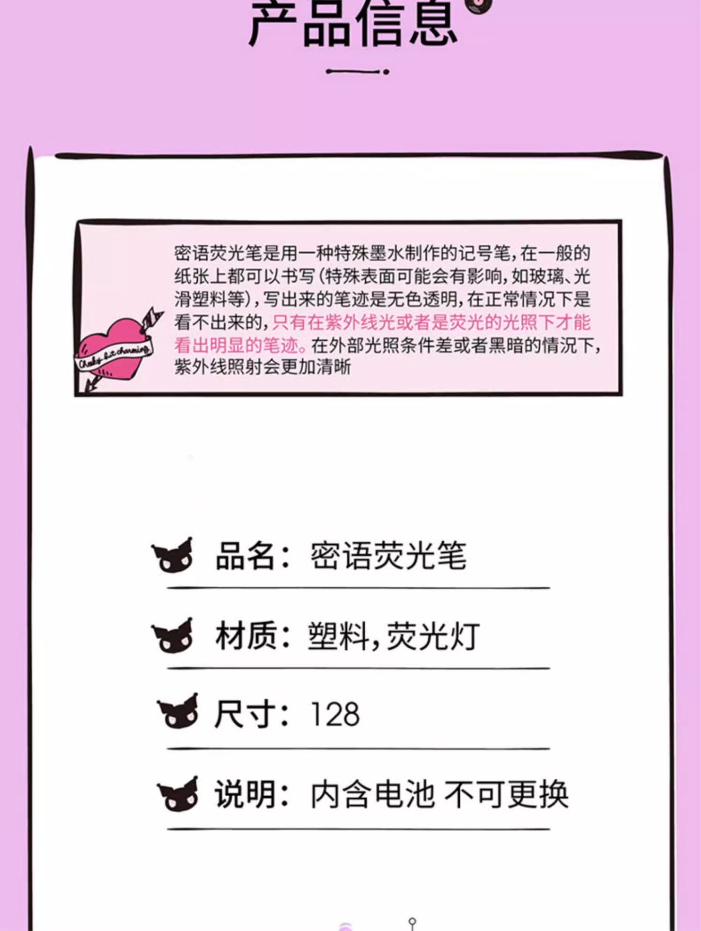 6支隐形荧光笔灯照笔夜光隐型笔带紫外线圆珠笔