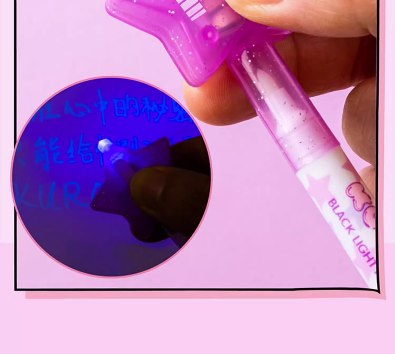 暗闇で光る魔法の目に見えないUVライトペン クロミの手書きが消える 秘密の書き込み 暗闇で光る子供用消えるペン