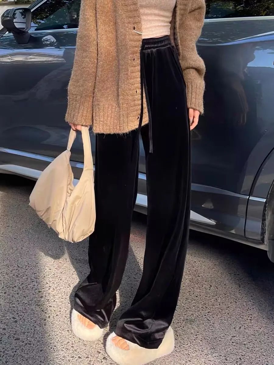 金丝绒阔腿裤女秋冬2025新款垂坠感高腰显瘦加绒直筒休闲丝绒裤