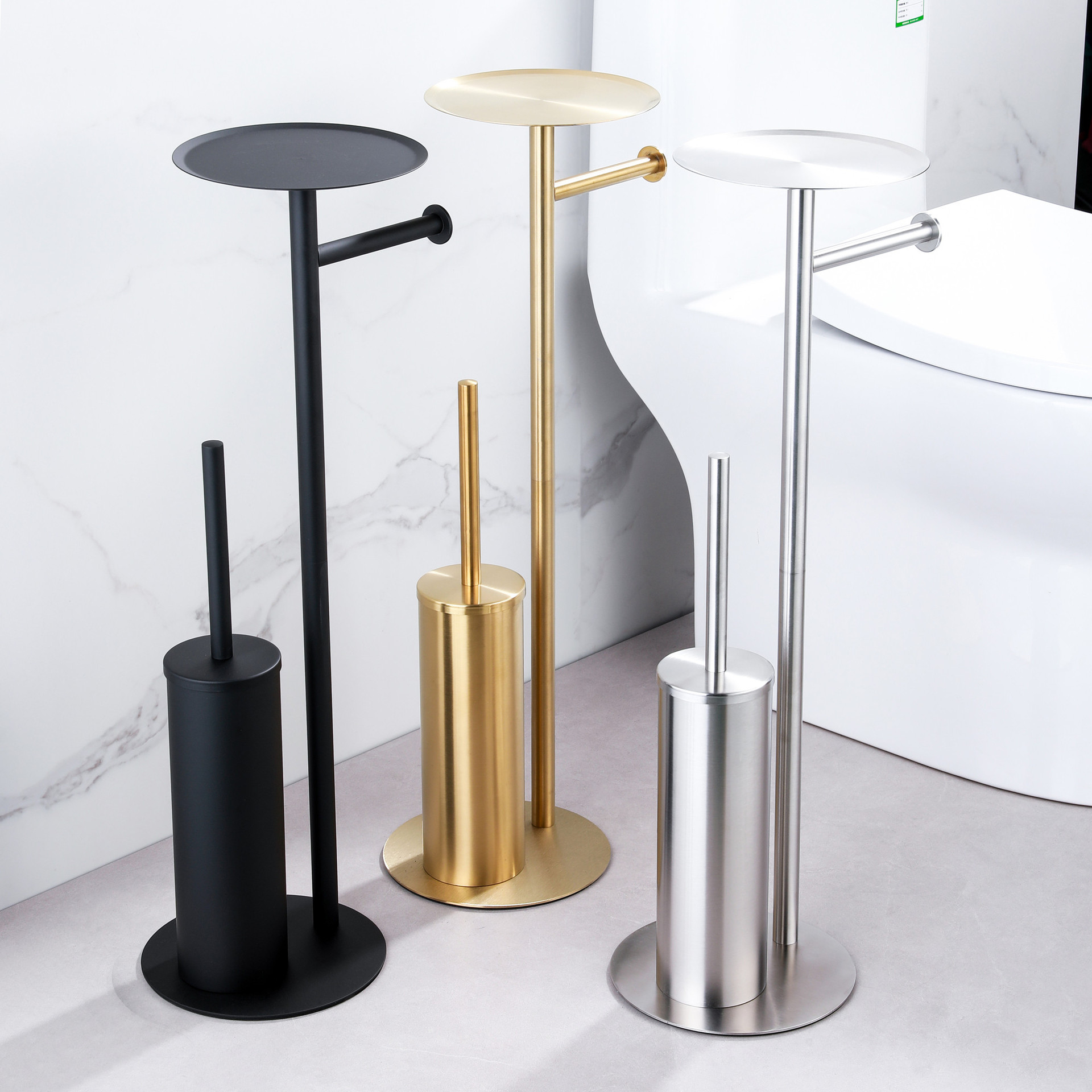 跨境站立式带马桶刷的厕纸架不锈钢卫生间落地式厕所清洁刷卷纸架