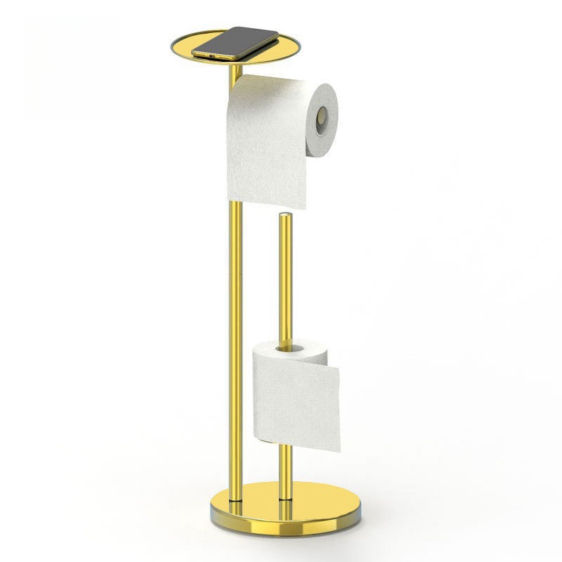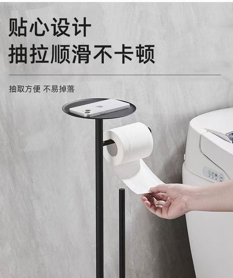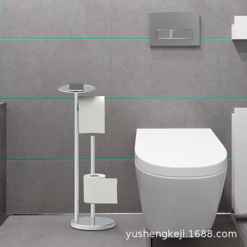 国境を越えたペーパータオル棚浴室衛生紙巻き収納棚携帯電話付きステンレス床置き伸線トイレットペーパースタンド式