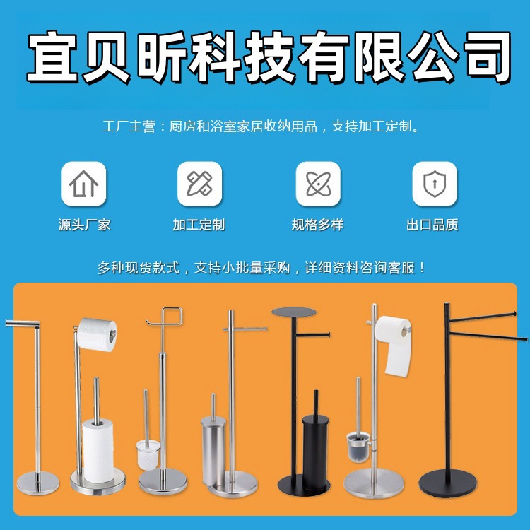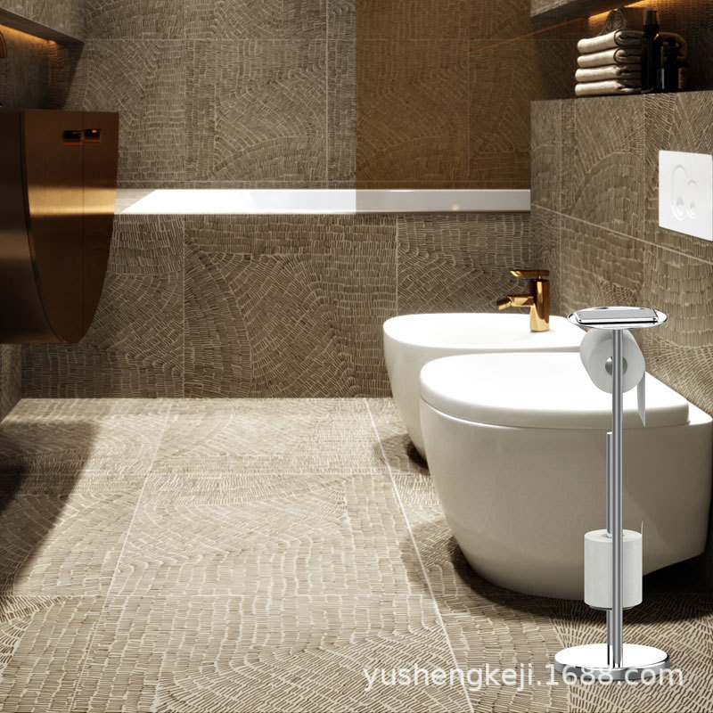 跨境不锈钢立式马桶刷落地纸巾架卫生间可移动卷纸架带手机托盘架