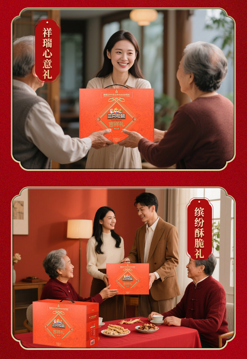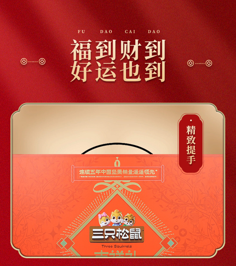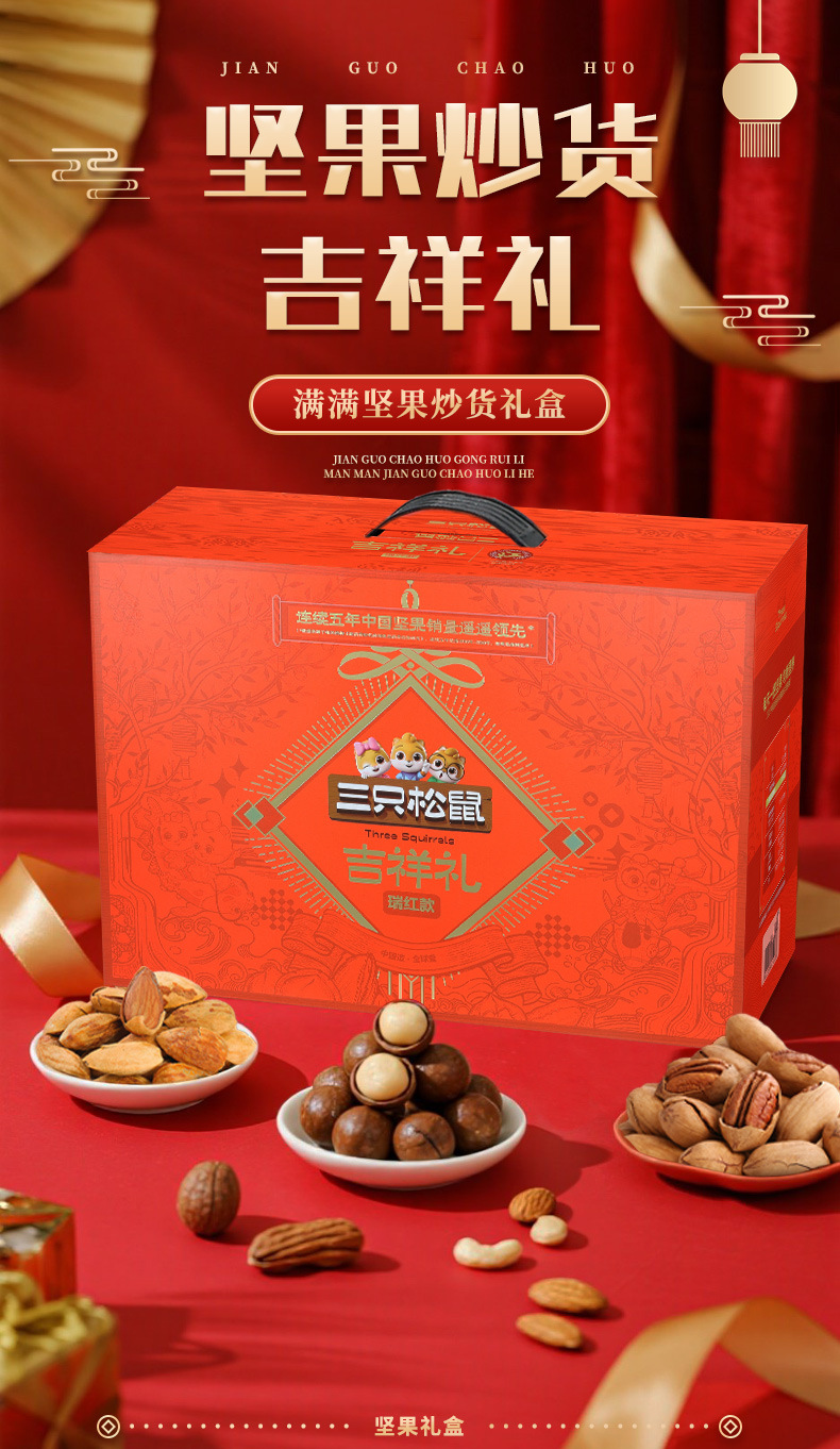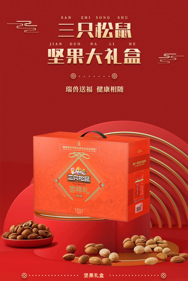 新商品2024年リスナッツ三匹礼箱龍騰金1520g/8袋目上の人がお菓子を贈るギフトバッグ