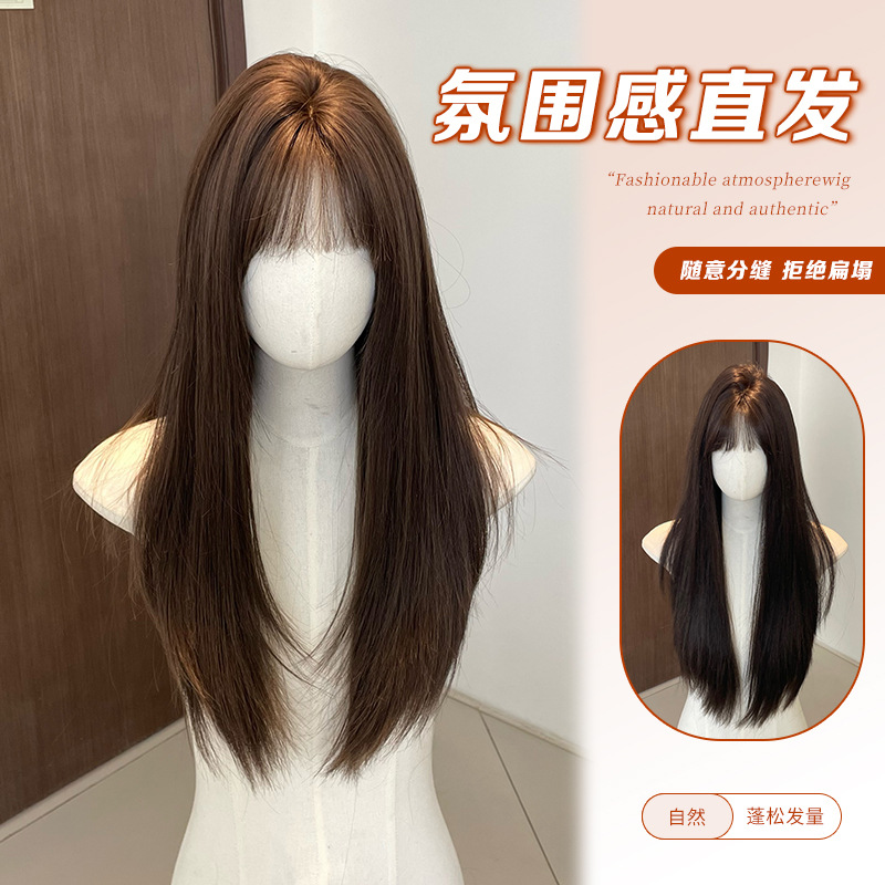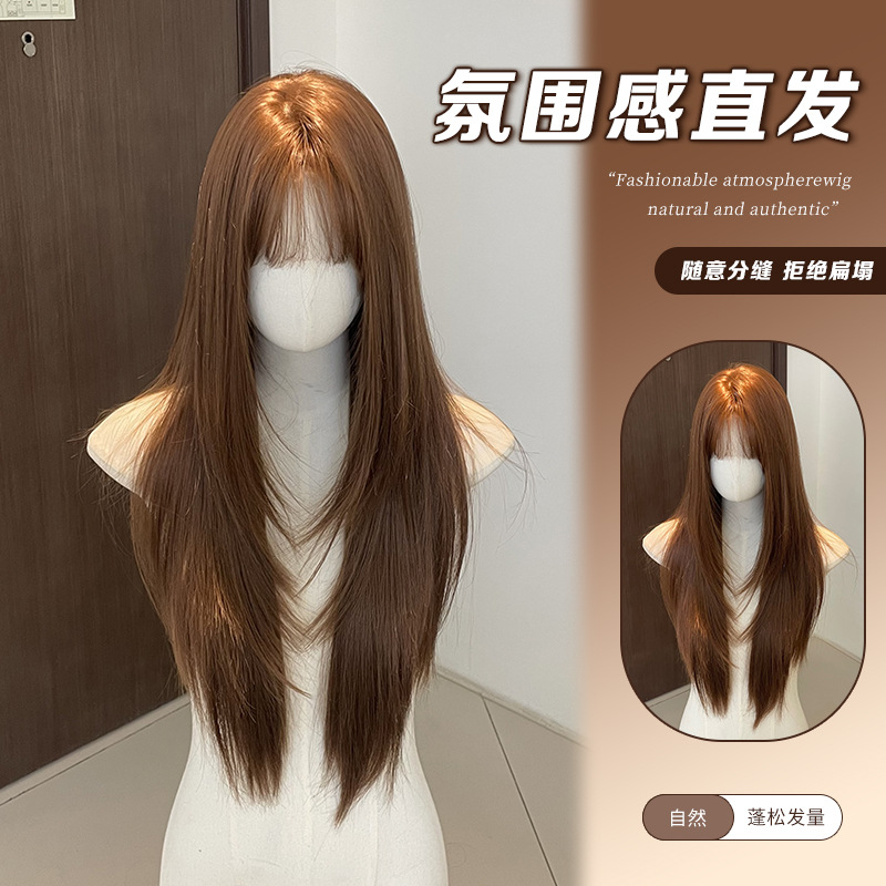 桜のかつら冬の新型女性は自然にリアルな前髪橘茶色のロングストレートの丸い顔をしています。