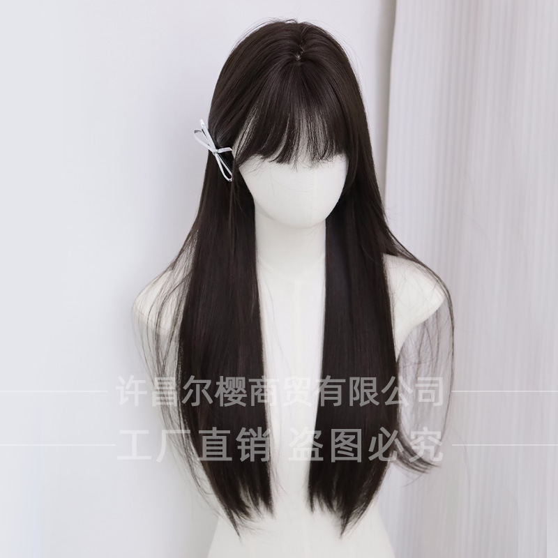 L桜クロスボーダーかつら女性ロングヘア自然全体カバーロングストレート自然空気前髪かつら