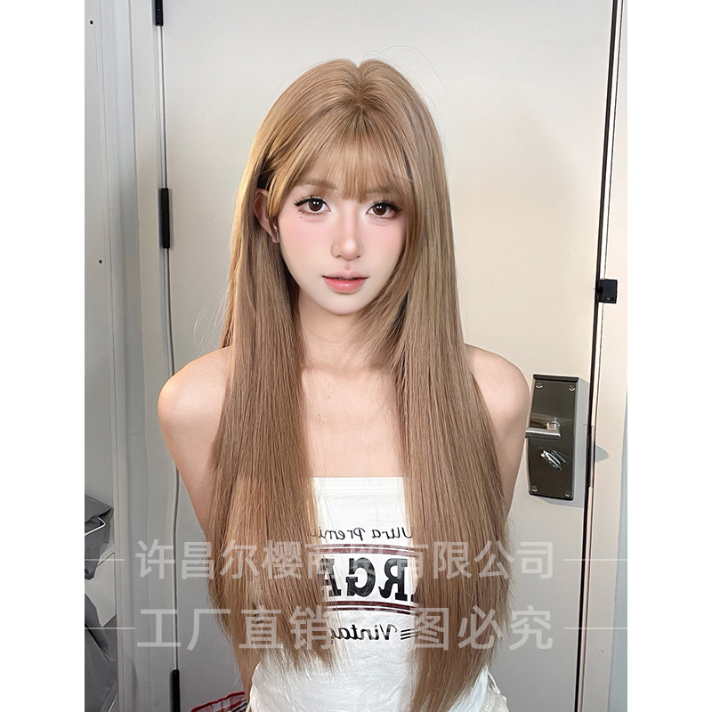 爾桜のかつらの女性の長髪の韓国式の女性団の髪形のミルクティーのシャンパンの長いストレートの髪は自然に迫っています。