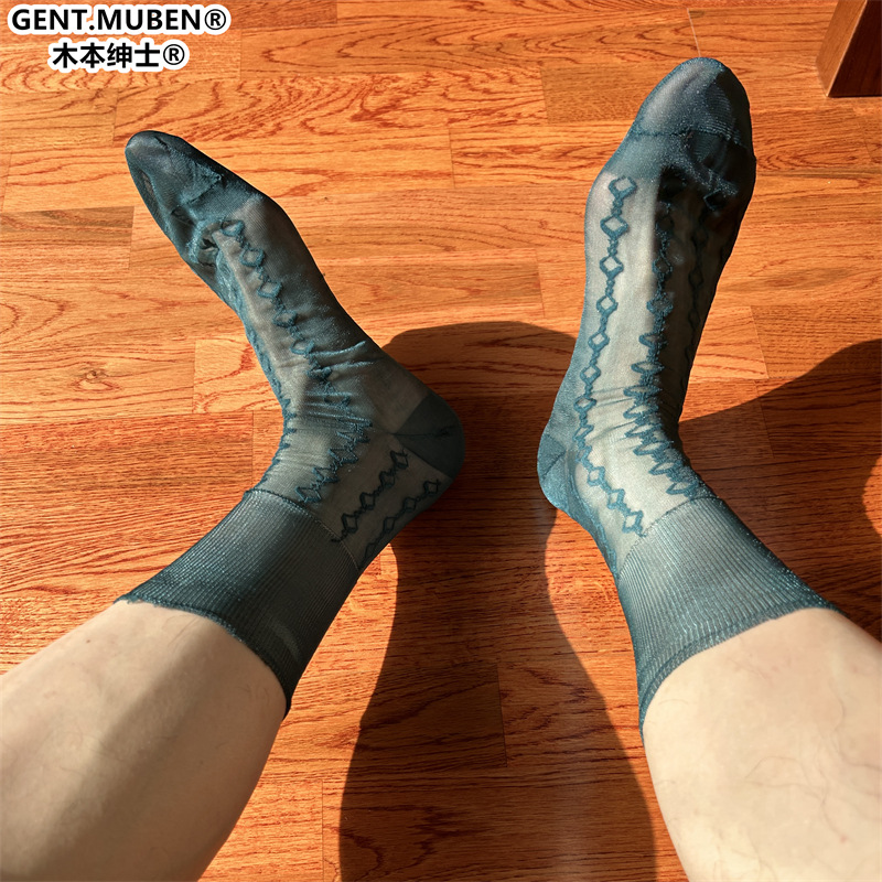 LJ05单底老式全锦纶松口不卷边雨点纹男士黑色薄透商务正装丝袜