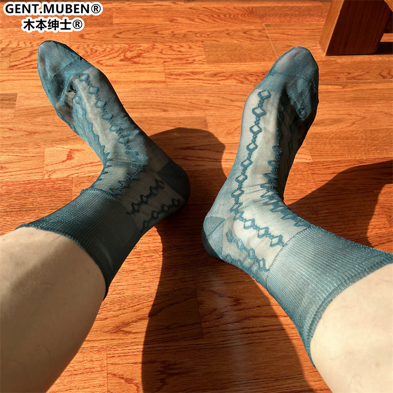 LJ02 シングルボトム ナイロン100% ゆったりとした縁なし菱形ジャカード織り メンズ グリーン 通気性 無地 ビジネスフォーマル シルクソックス