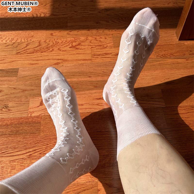 木本紳士LJ03シングル底全ナイロンの松口が丸くないダイヤモンドのジャカードの白い男性の薄い通気性のストッキング