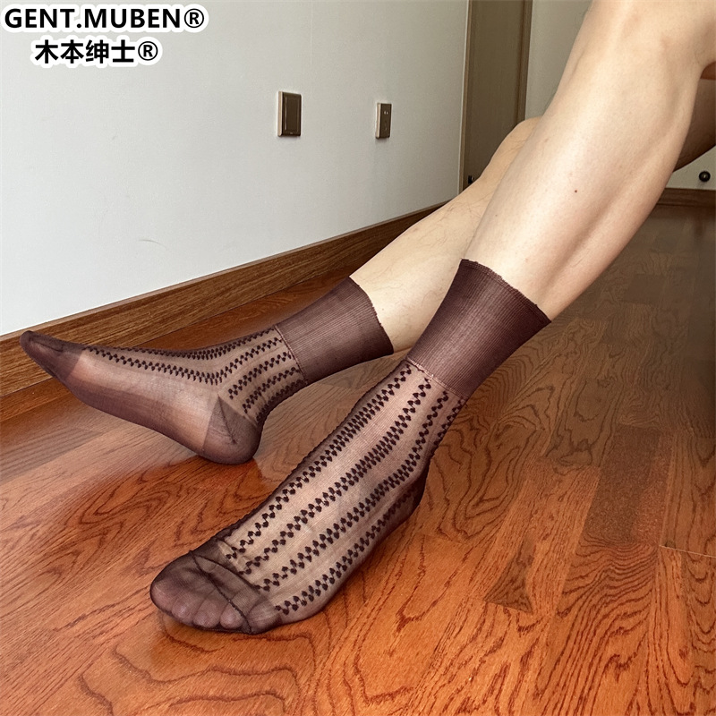 LJ05单底老式全锦纶松口不卷边雨点纹男士咖啡色薄透商务正装丝袜
