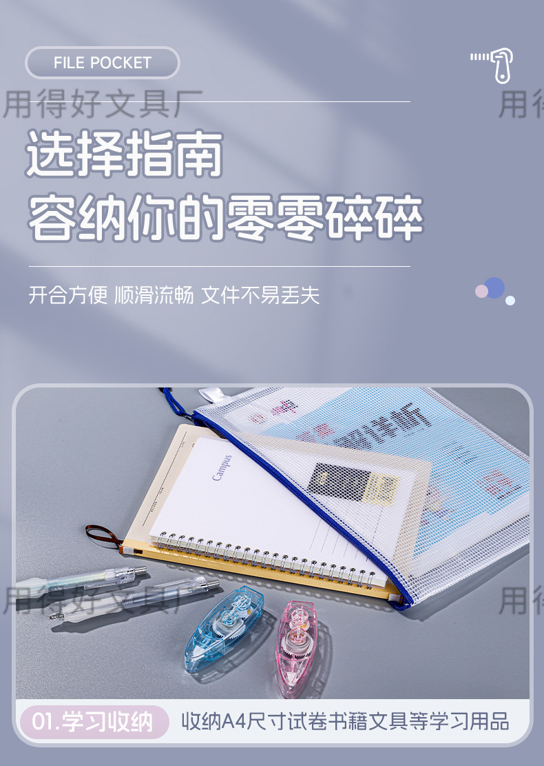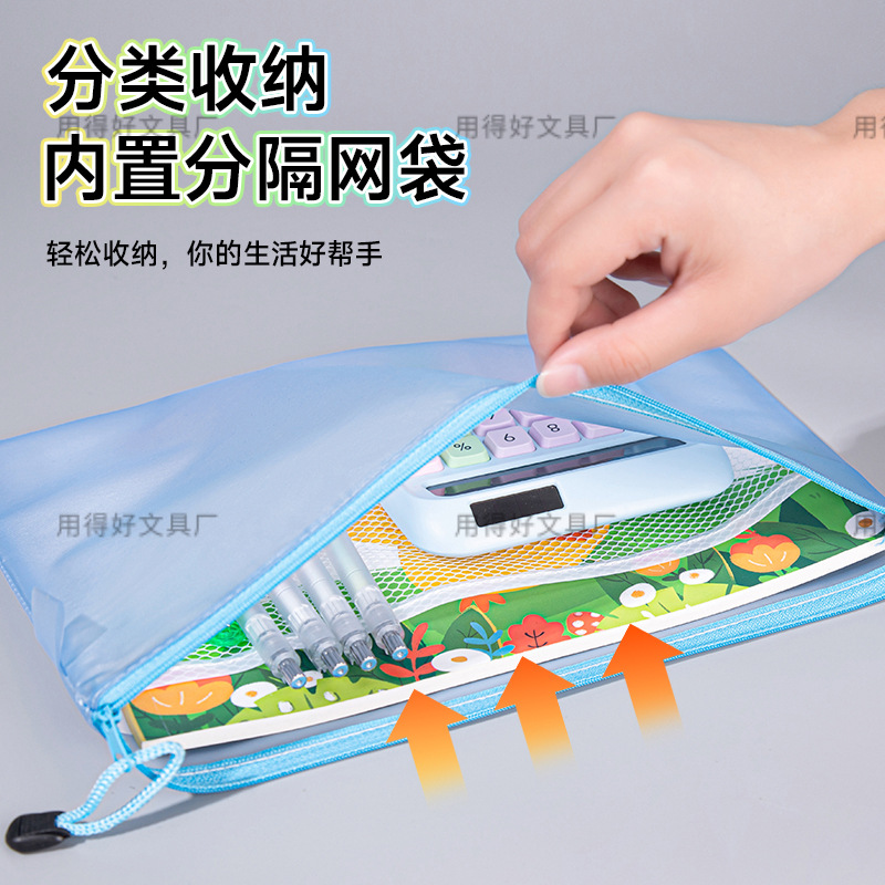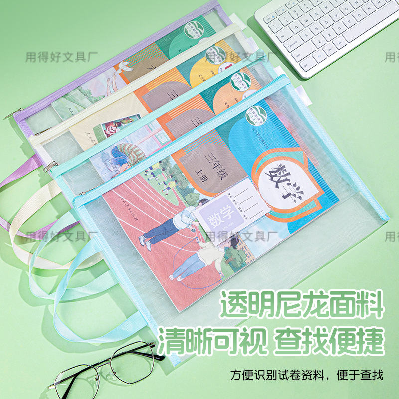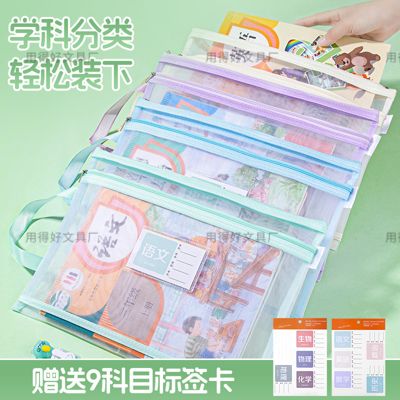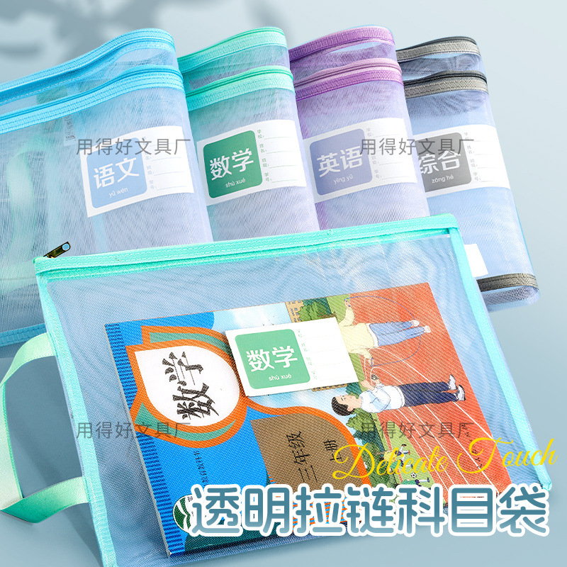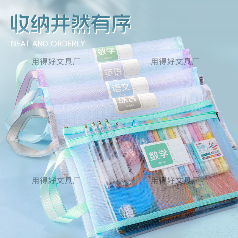 科目分類ファイルバッグ二層メッシュバッグジッパー学生収納袋大容量ジッパーバッグポータブル