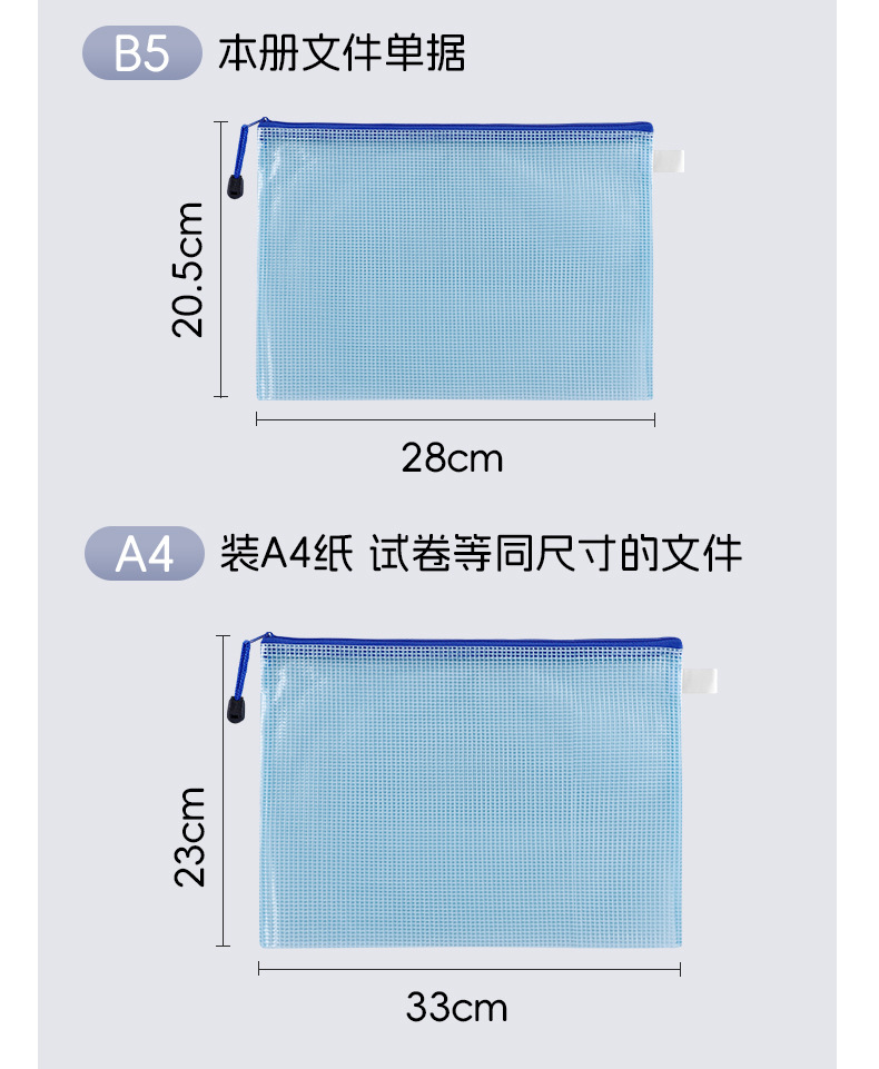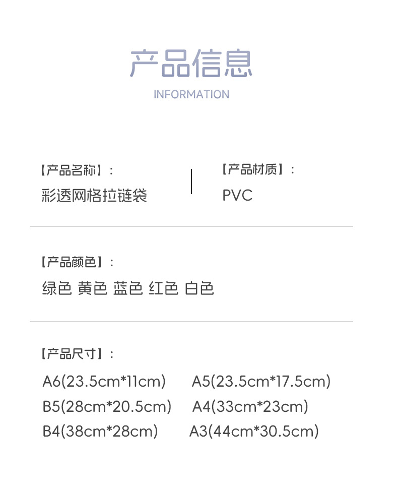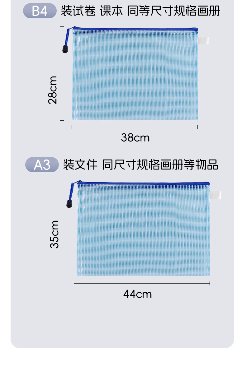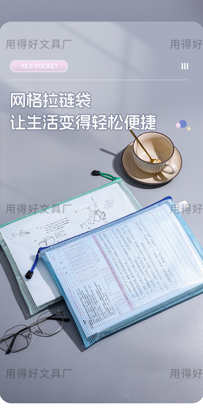 网格文件袋透明塑料拉链袋大容量学生用a4防水收纳袋A3