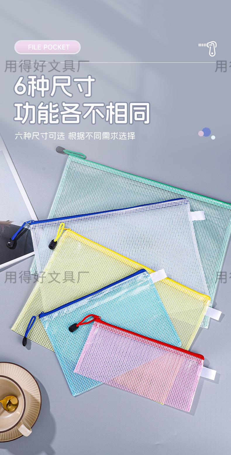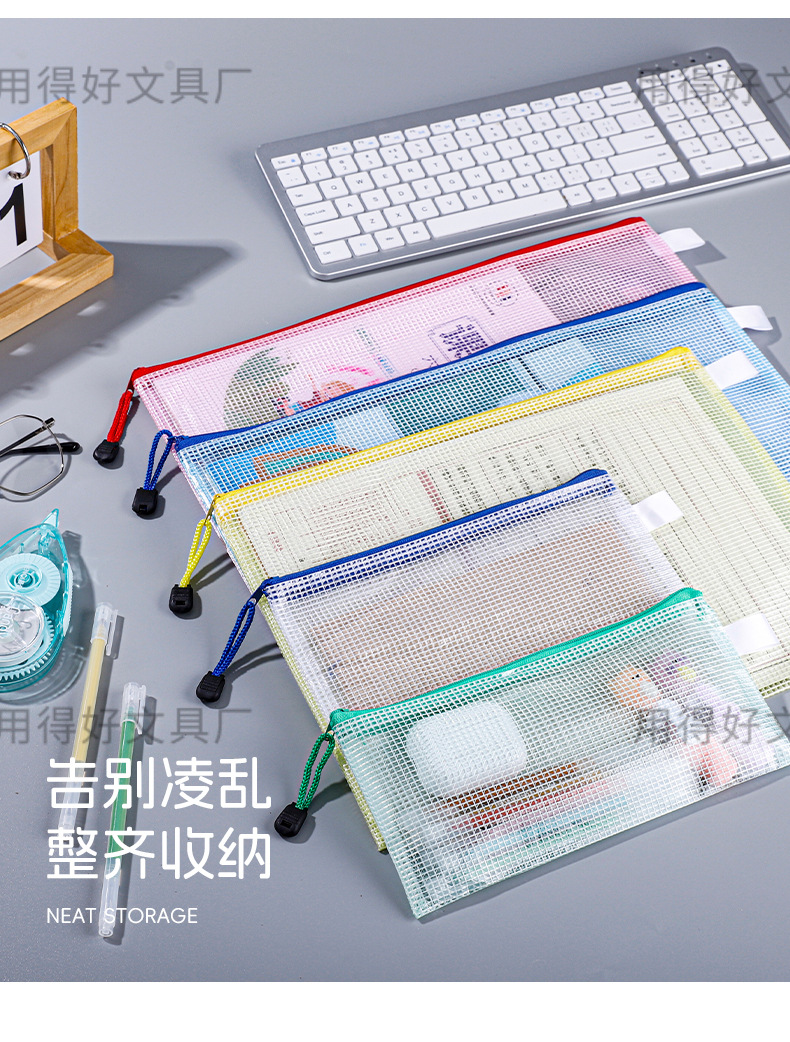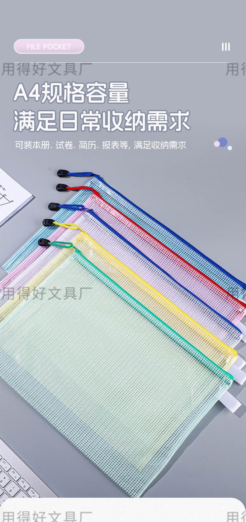A4 オフィス ファイル ジッパー バッグ透明メッシュ PVC ジッパー バッグの国境を越えた供給