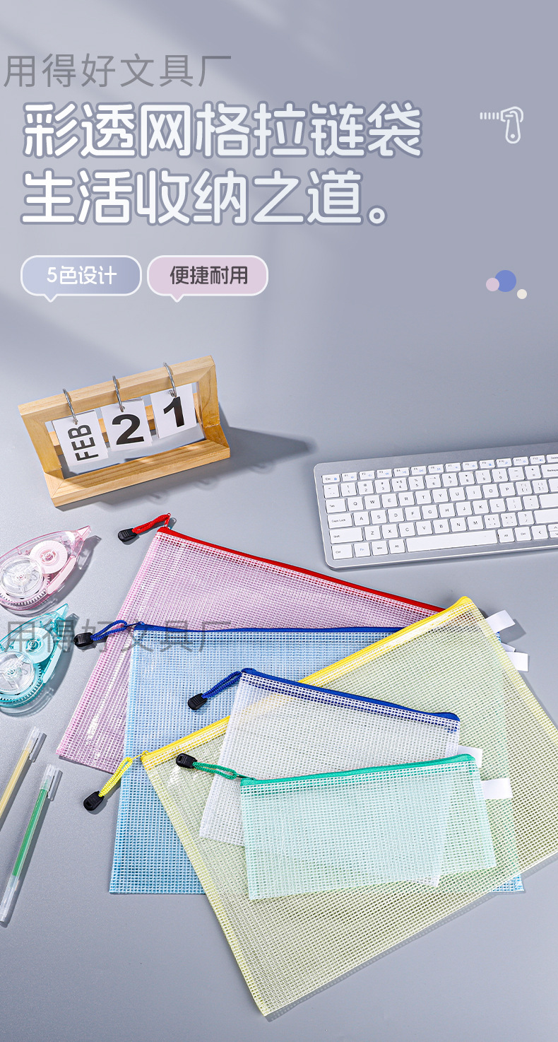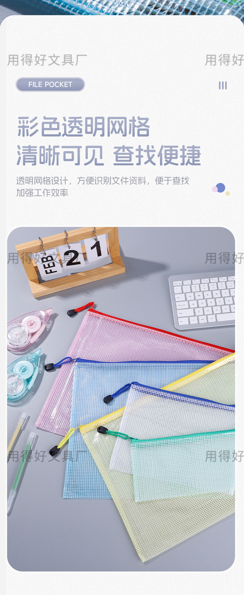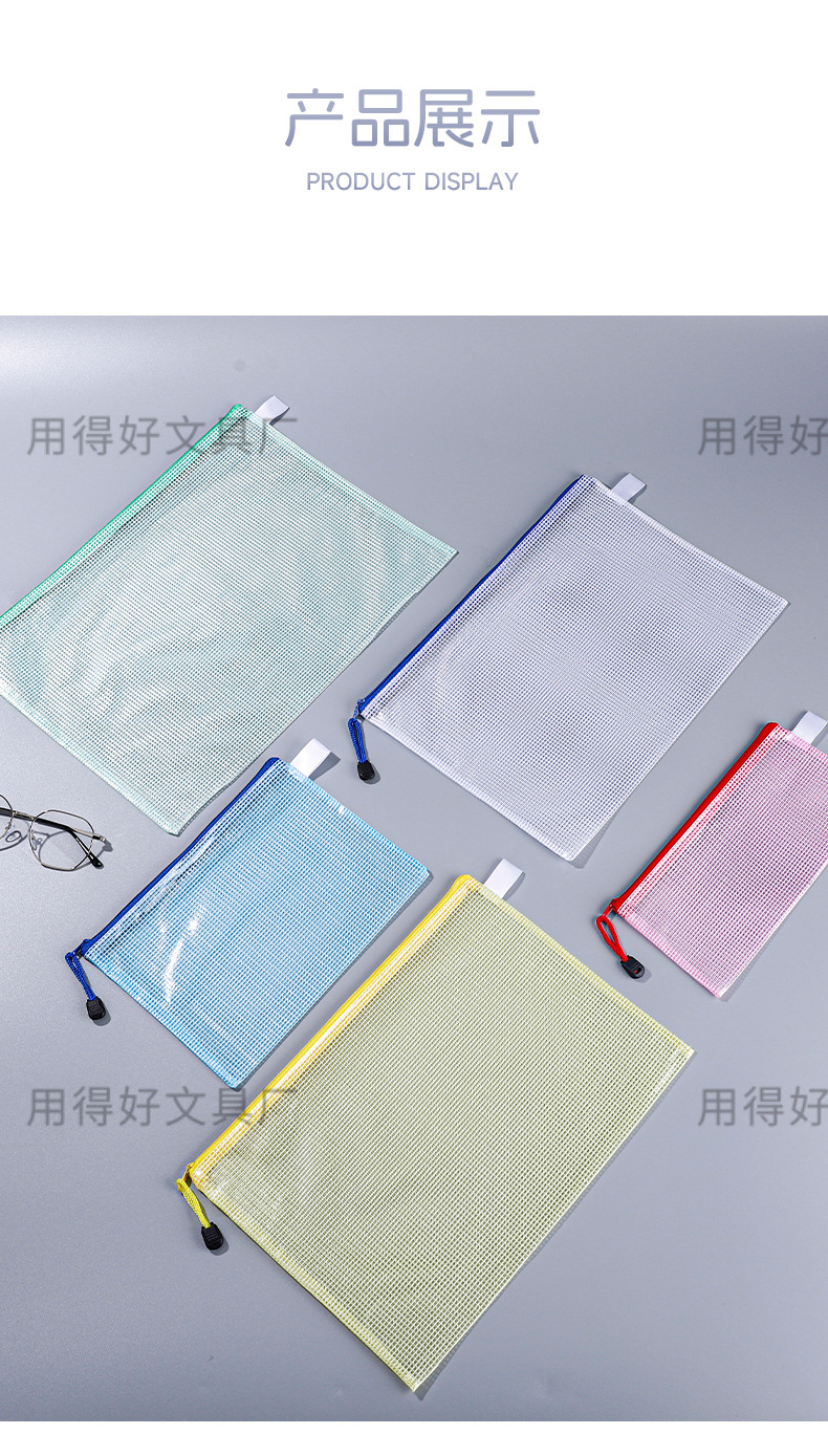 A4 オフィス ファイル ジッパー バッグ透明メッシュ PVC ジッパー バッグの国境を越えた供給
