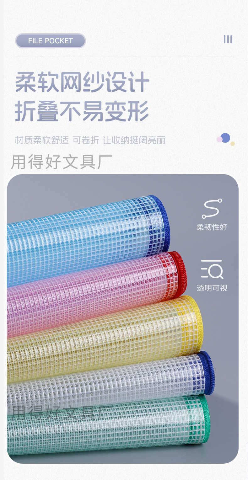 マカロン科目分類バッグA4透明メッシュハンドバッグ学生用収納試験紙ジッパーバッグ