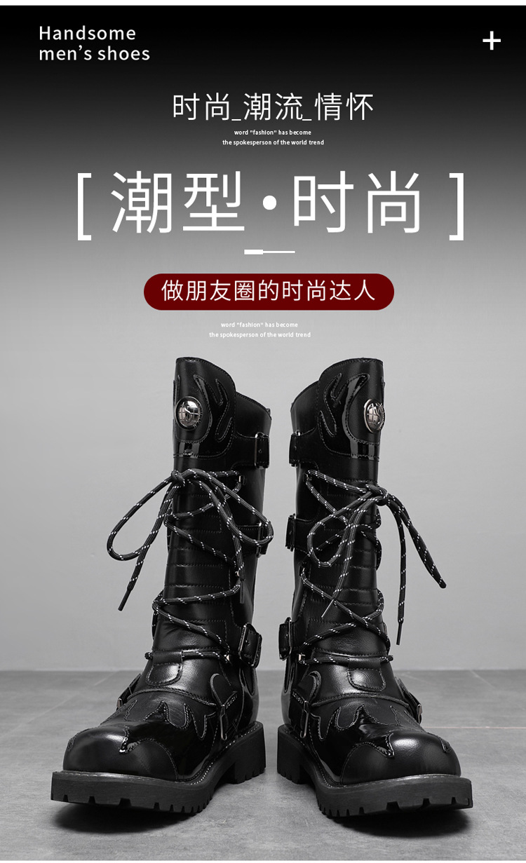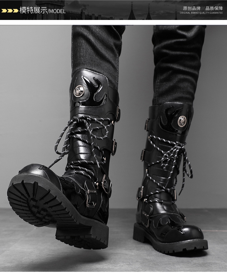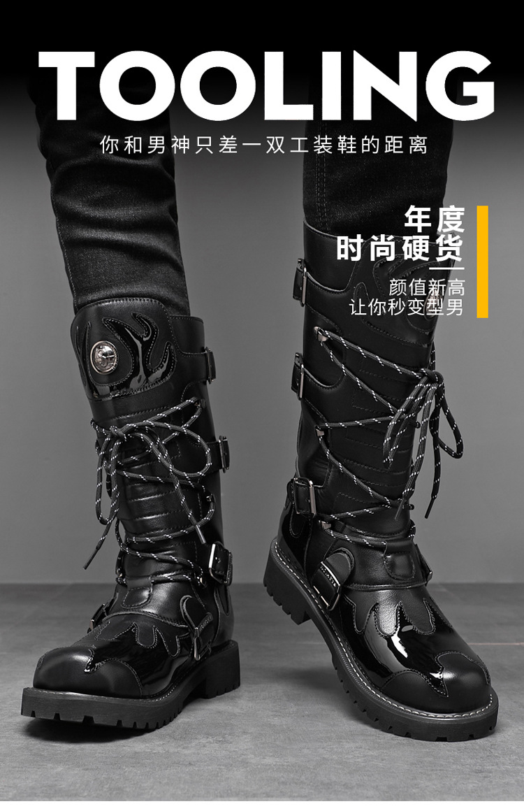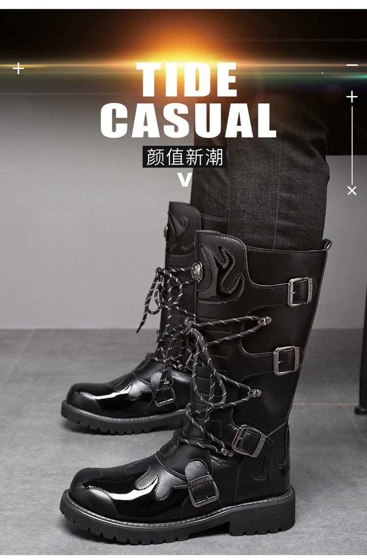 痞帅马丁靴男款秋冬季机车长筒男靴时装高帮大码骑士工装马丁靴子
