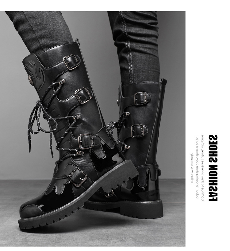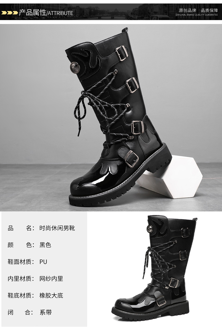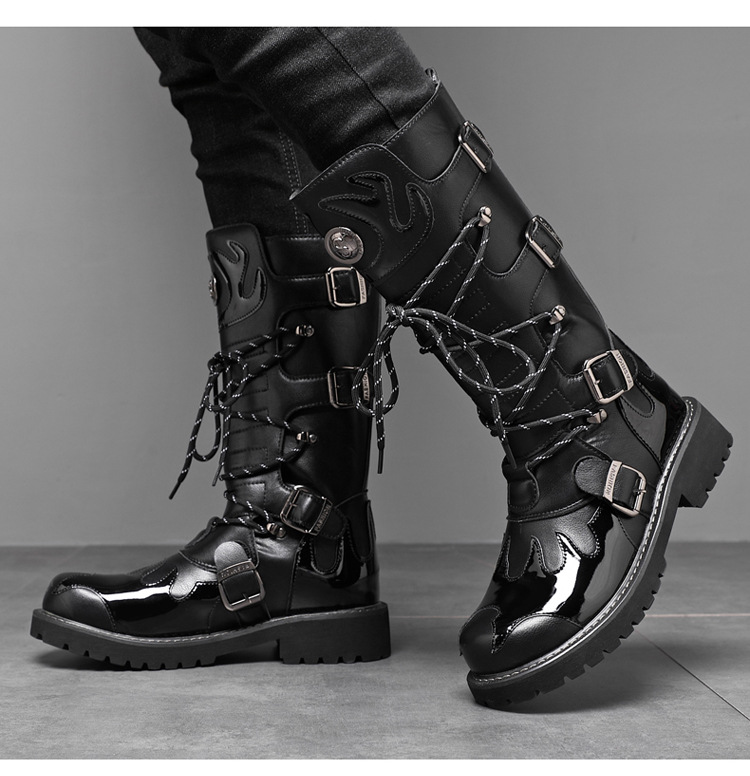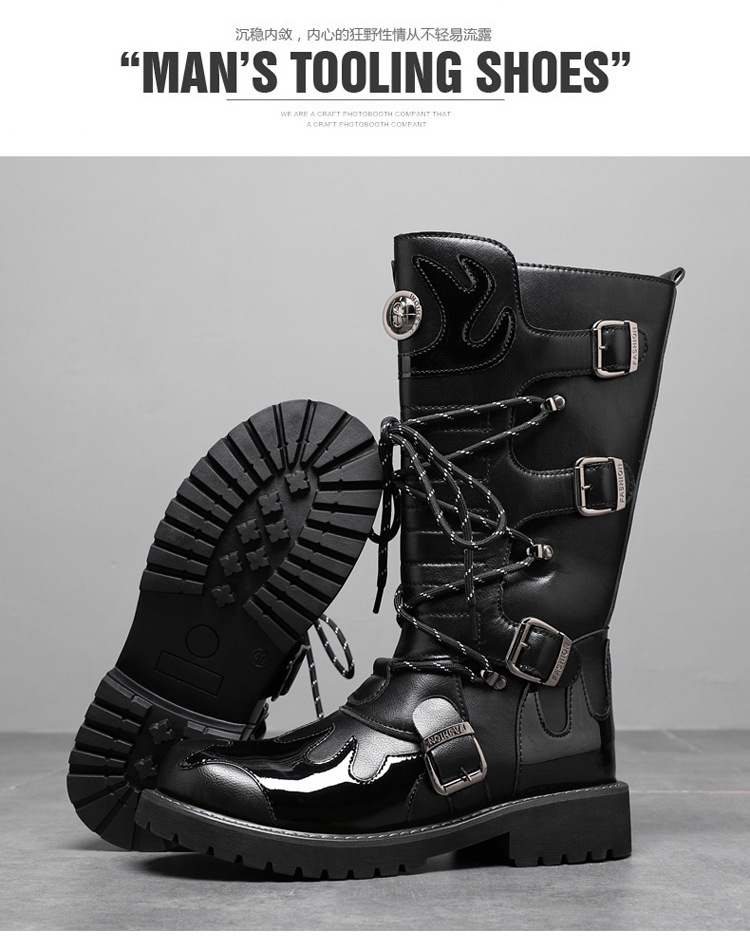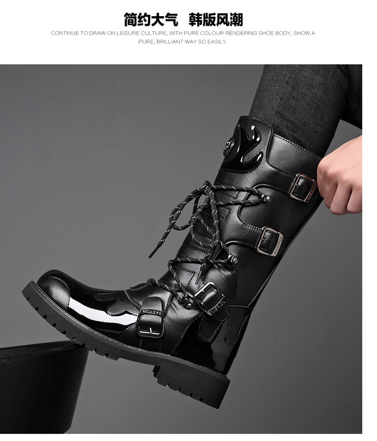 痞帅马丁靴男款秋冬季机车长筒男靴时装高帮大码骑士工装马丁靴子