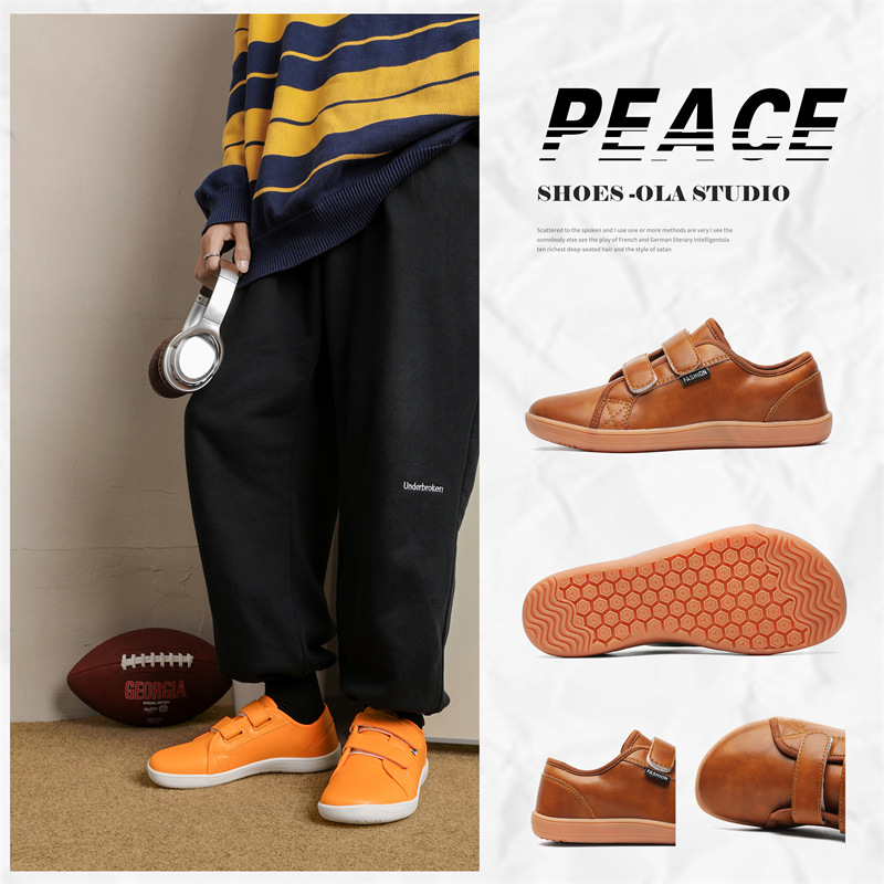 跨境大码魔术贴宽头运动鞋男女宽楦赤足鞋48脚宽脚胖皮面休闲鞋47