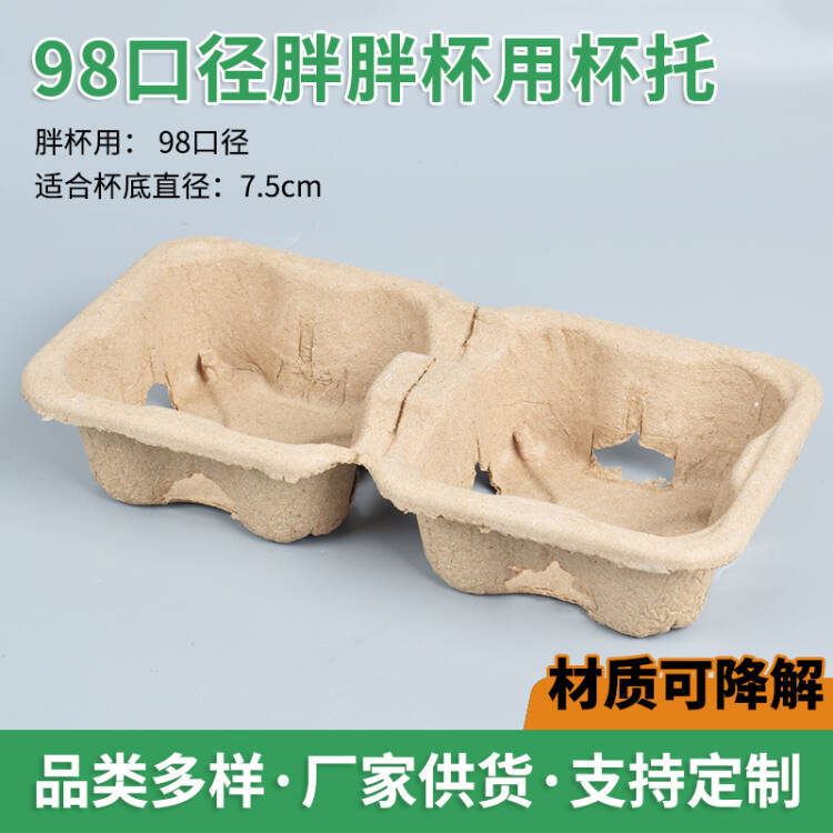 98口径胖胖杯用杯托 奶茶咖啡外卖打包双杯可撕拉一次性纸浆杯托